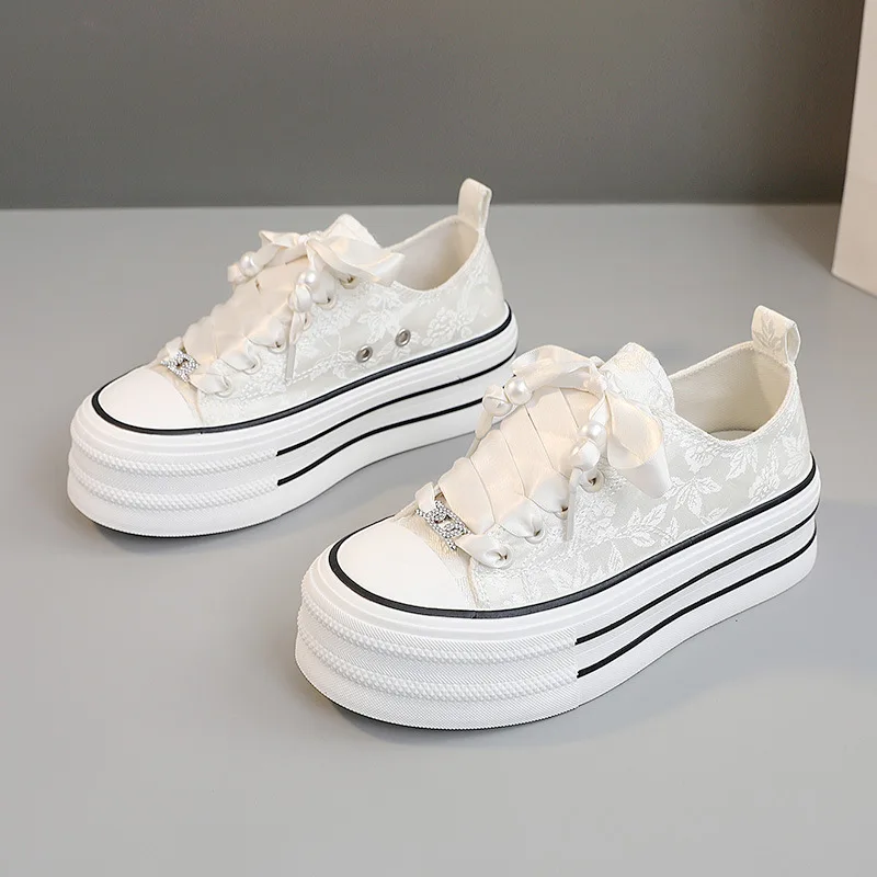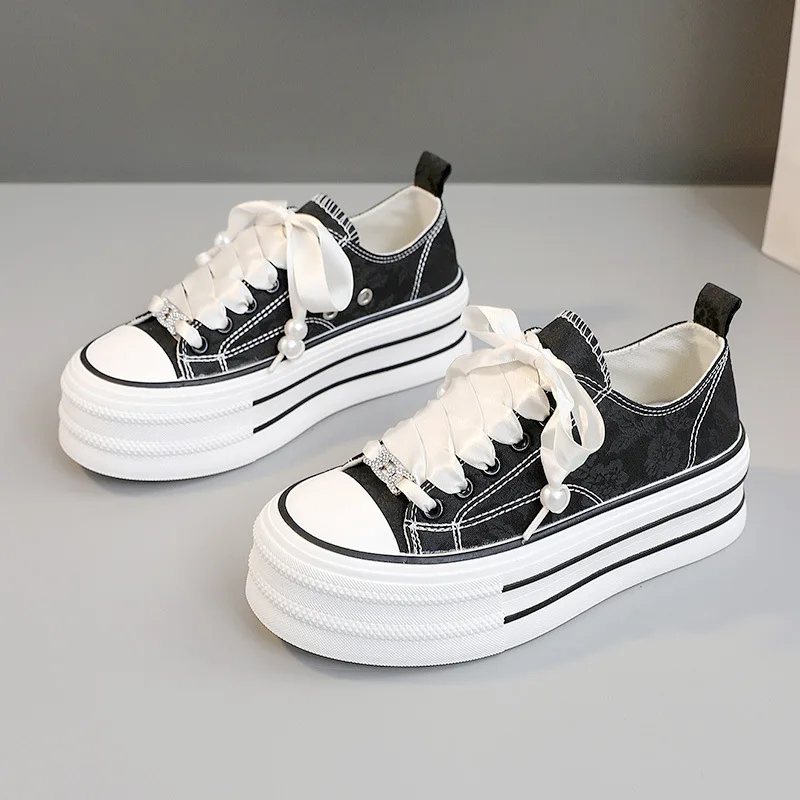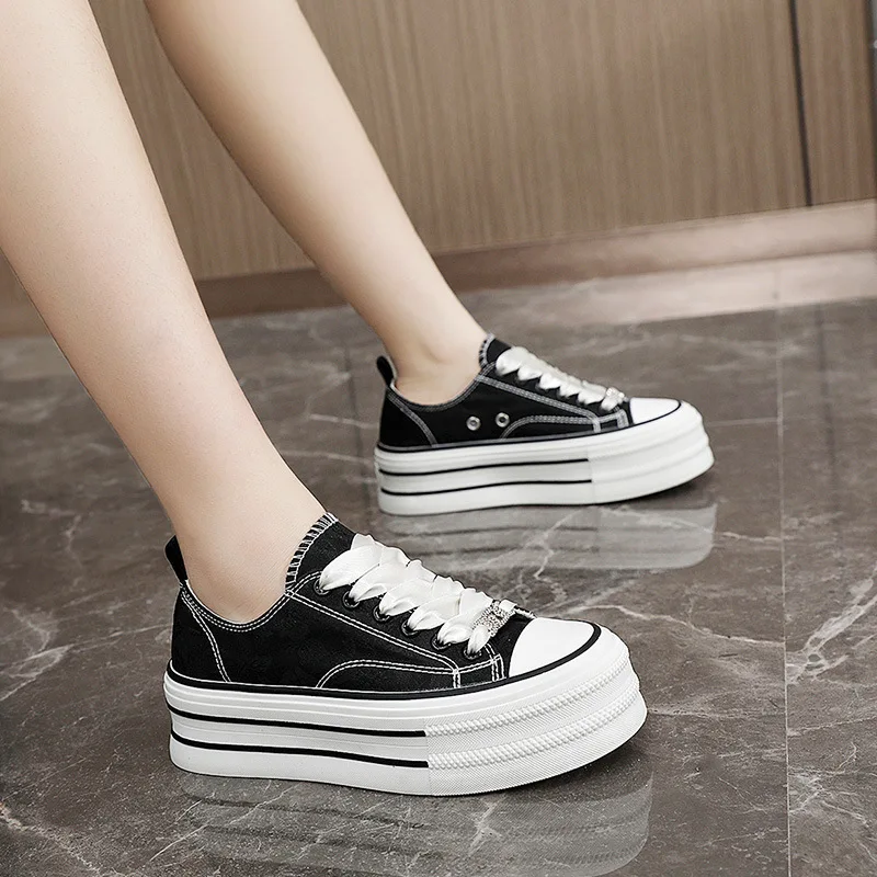 BR601 Women's Casual Canvas Shoe Korean Style Thick Bottom Trends Sports Shoes Walking Shoes
