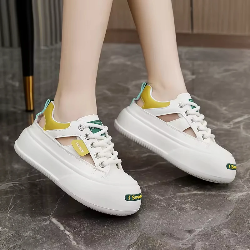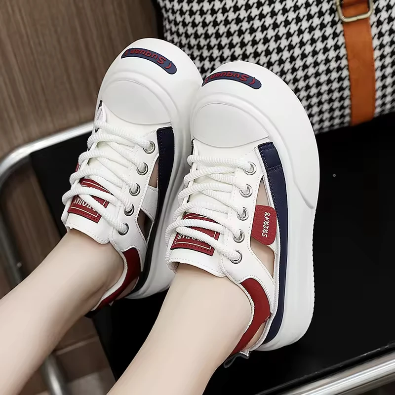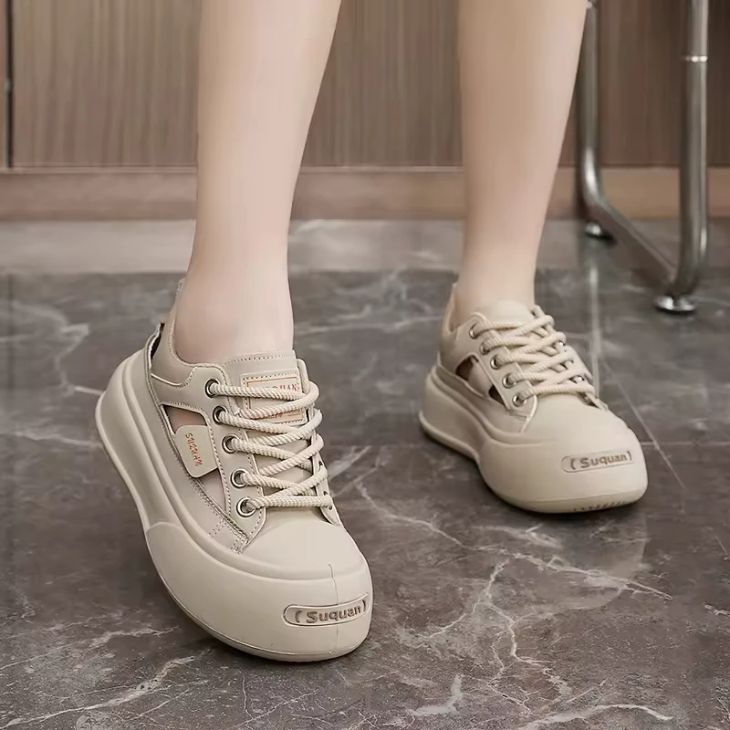 K1718 Made in China Fashion Trend Comfortable Women's Shoes Summer Hollow Breathable Thick Sole Heightening Casual Shoes