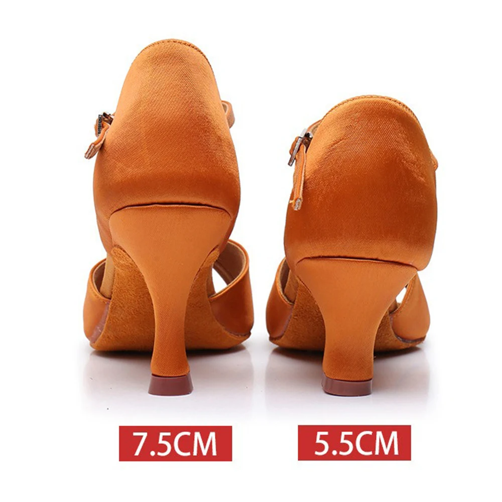 Satin 7.5cm Ballroom Salsa Latin Dance Shoes Soft Soled High Heels Dance Shoes for Girls Tango Salsa Dancing Shoes for Women