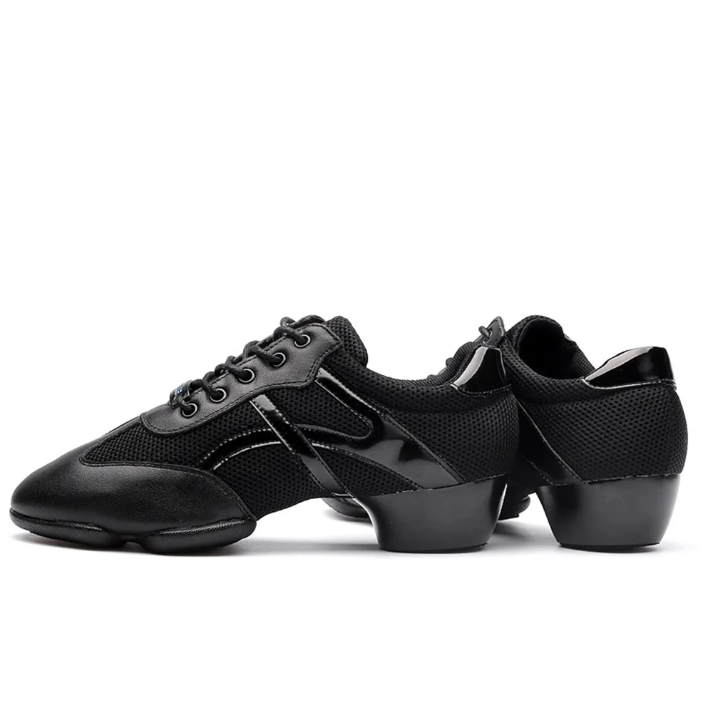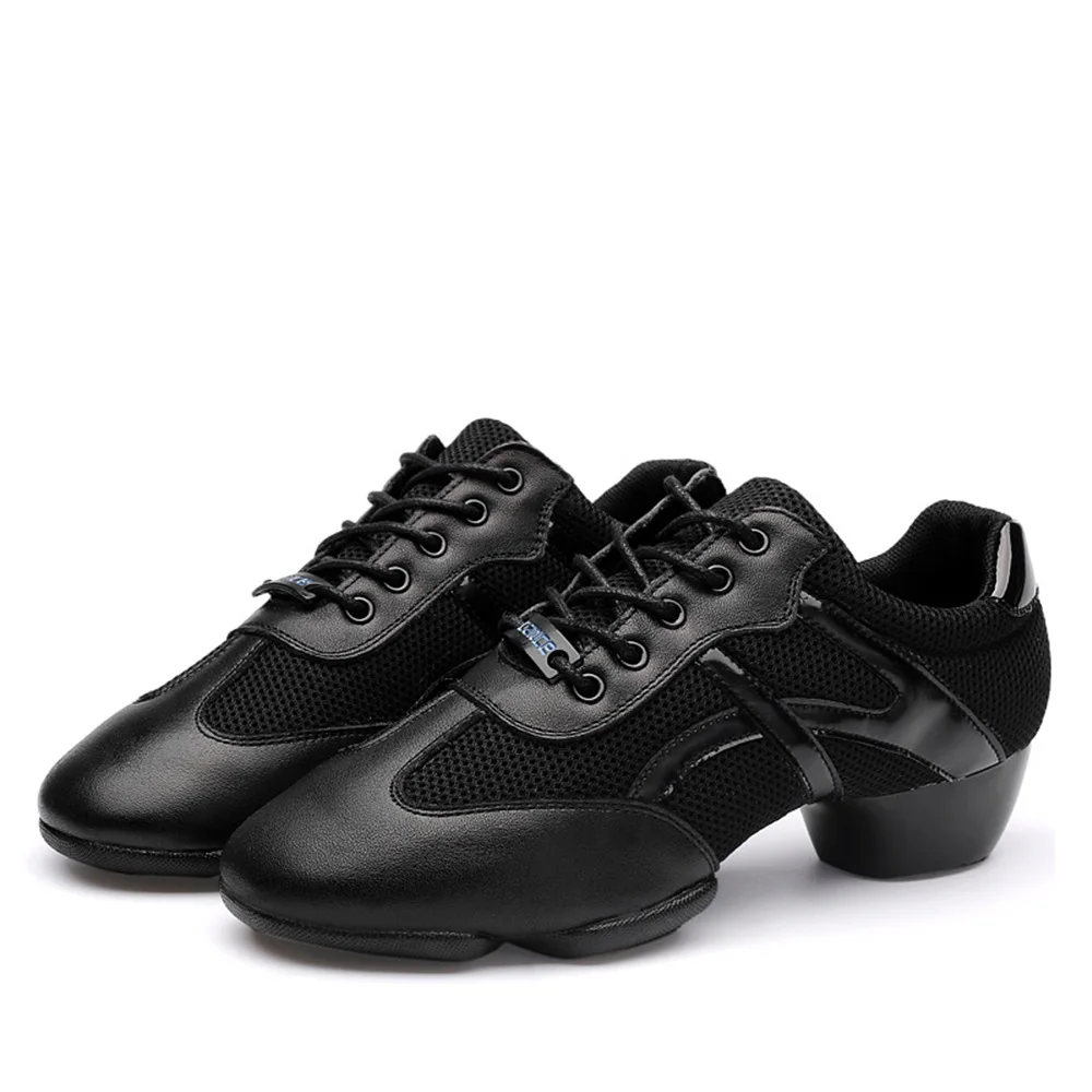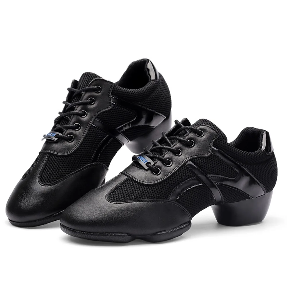 Unisex Cowhide Ballroom Dancing Shoes Low Heels Soft Soles Wear-Resistant Square Dance Shoes