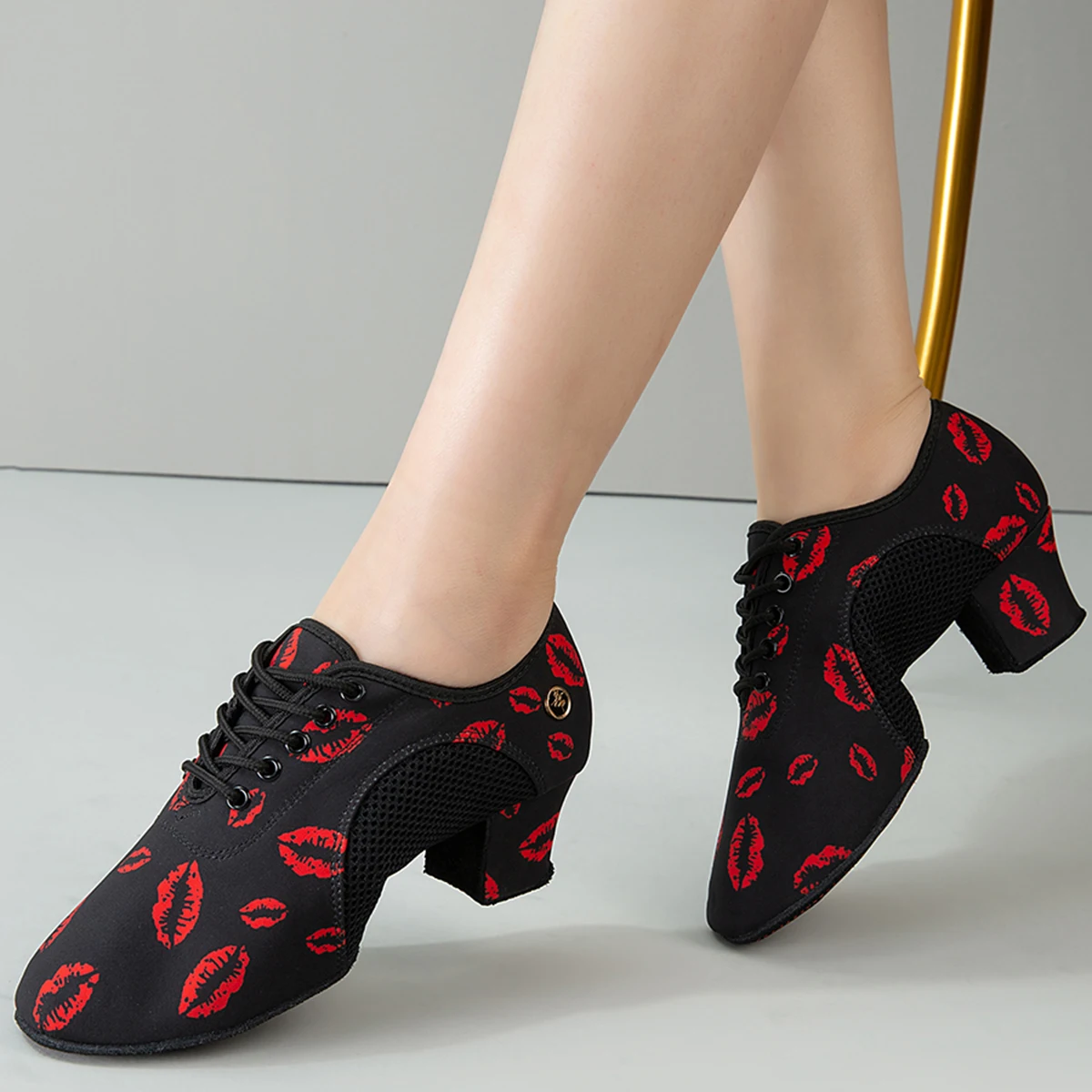 3.5/5cm Latin Dance Shoes Customizable Heel Sole Professional Oxford Cloth Latin Salsa Practice Dance Ballroom Shoes for Women