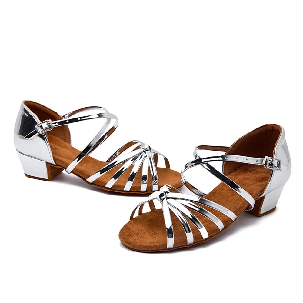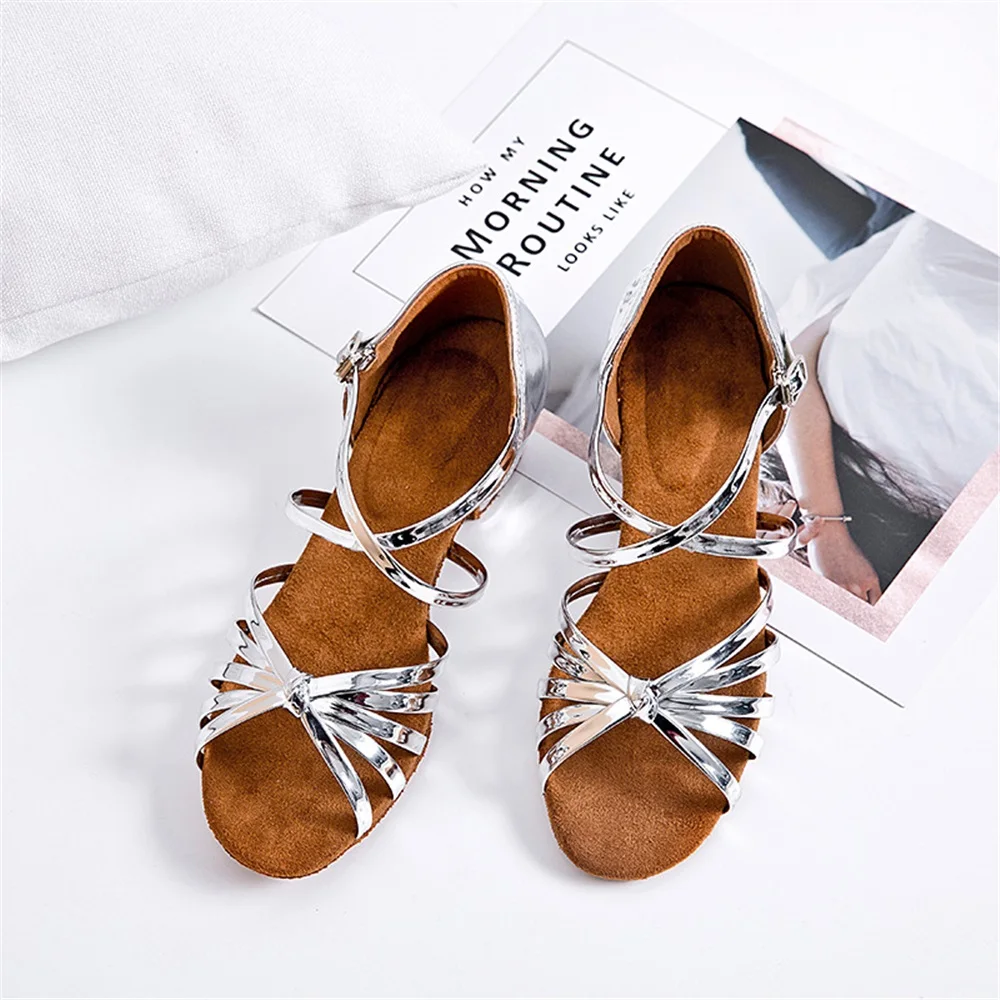 Girls Latin Dance Shoes Indoor Non-Slip Training Salsa Dance Shoes Low Heels Soft Soles