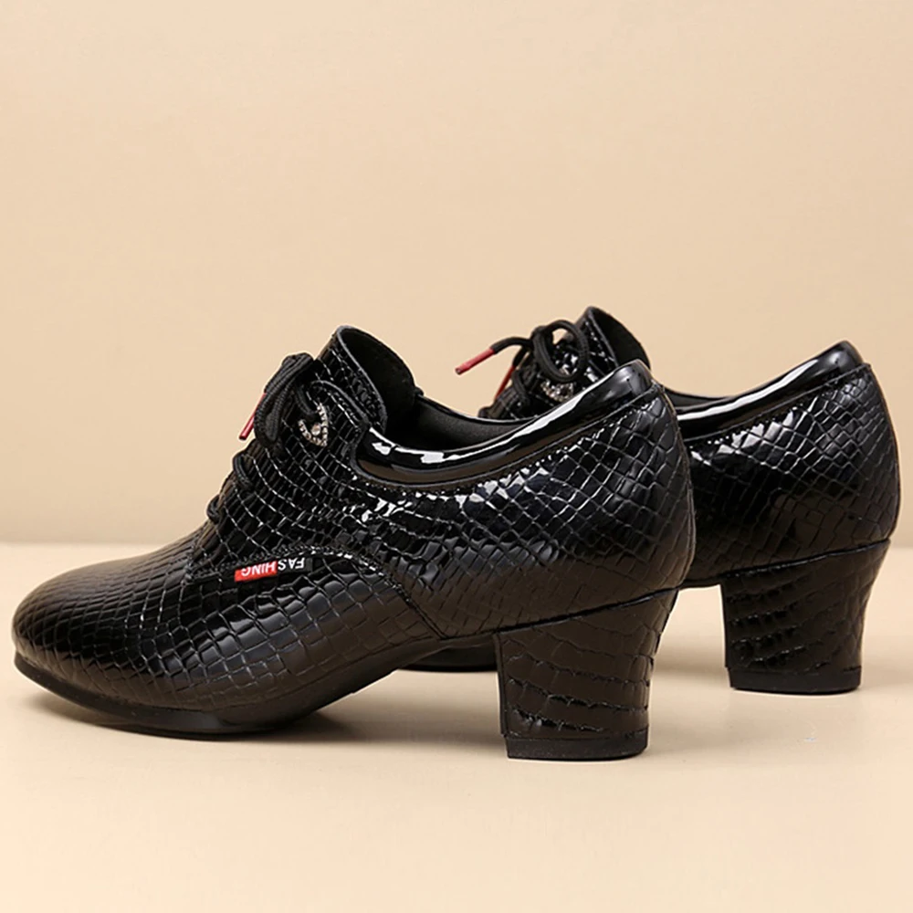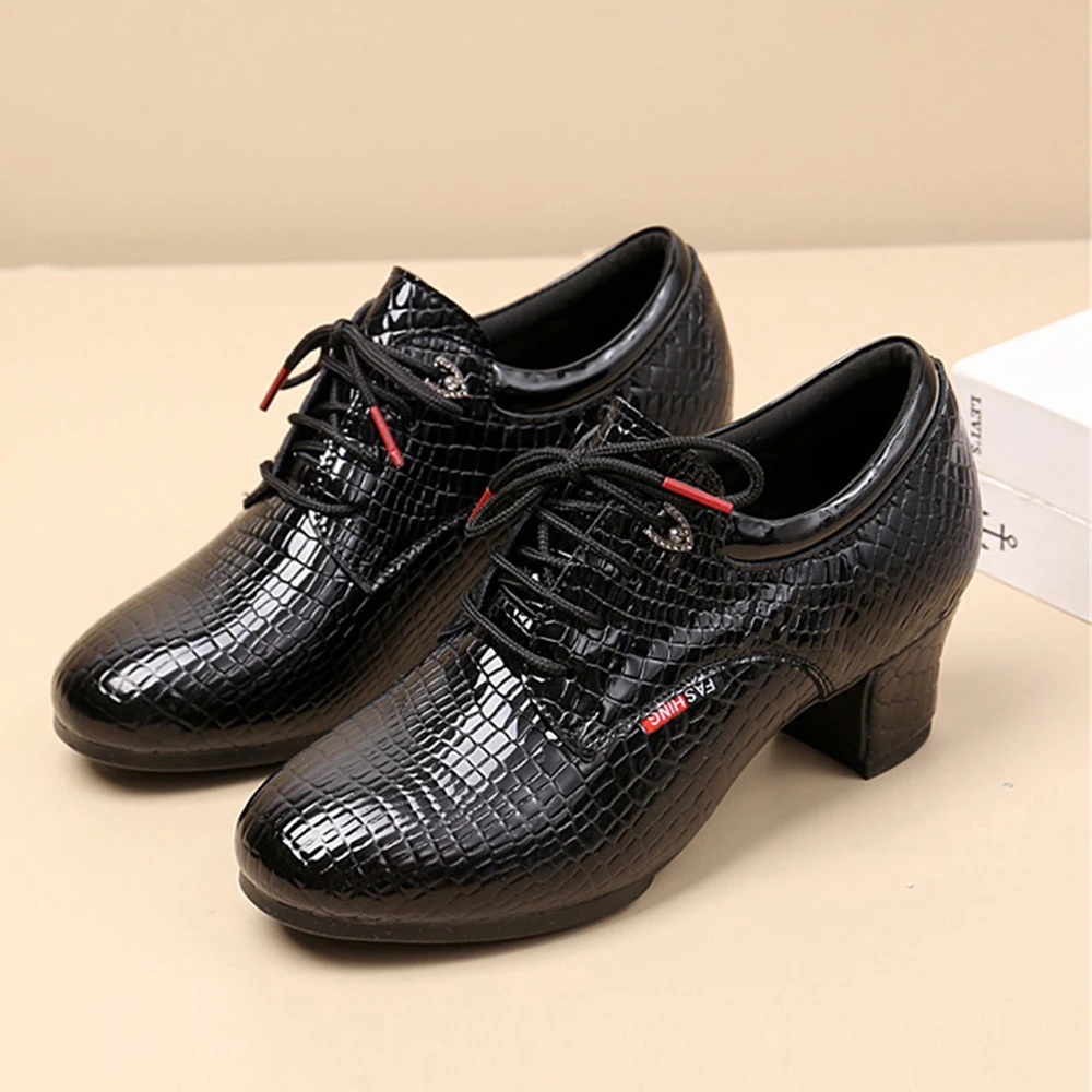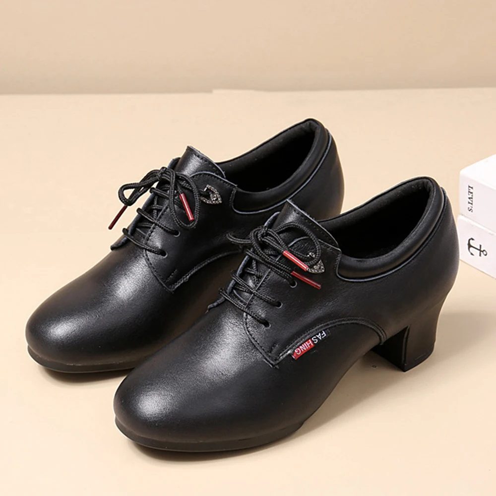 Adult Ladies Leather Square Dance Shoes Low-Heeled Soft-Soled Modern Training Dance Shoes