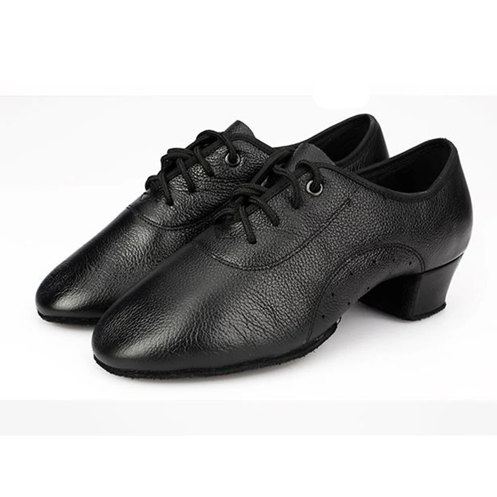 Men Leather Modern Dance Shoes Low Heels Soft Soles GB QiaQia Contact Dance Shoes