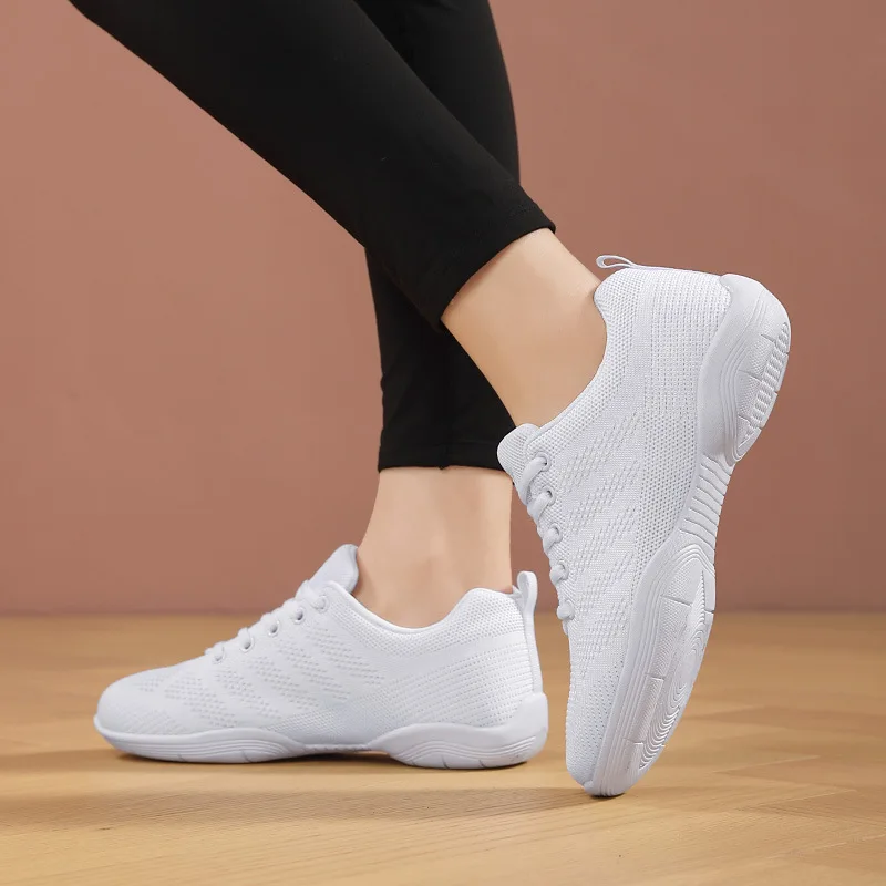 Ladies Mesh Elastic Fly Woven Square Dance Shoes Soft-Soled Cheerleading Dance Shoes Size 28-44