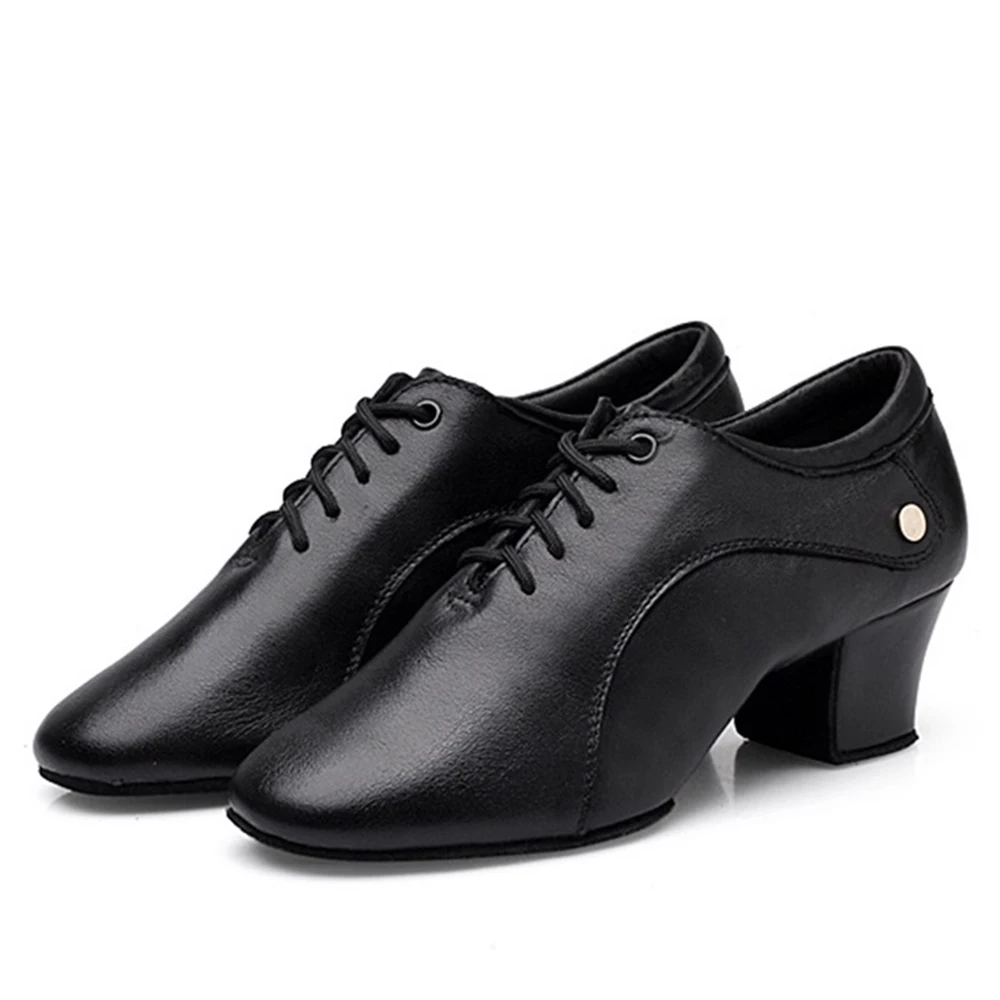 Ladies Cowhide Latin Dance Shoes Teacher Dance Training Shoes Low-Heeled Soft-Soled Square Ballroom Dancing Competition Shoes