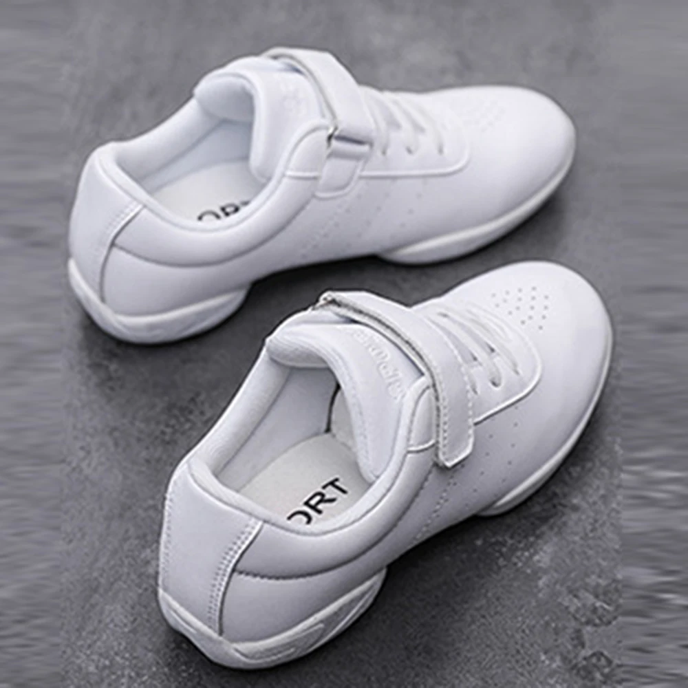 Children's White Slip-Resistant Soft-Soled Cheerleading Dance Shoes Indoor Aerobics Sports Shoes