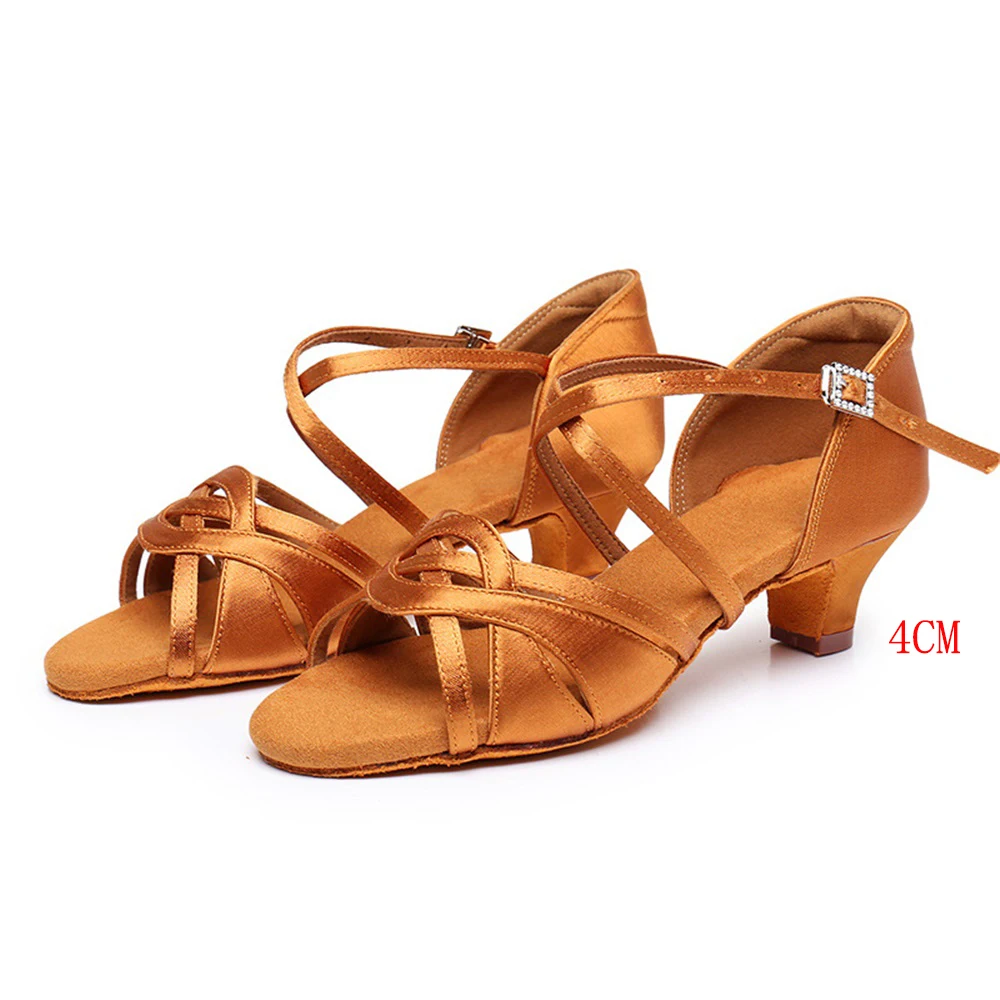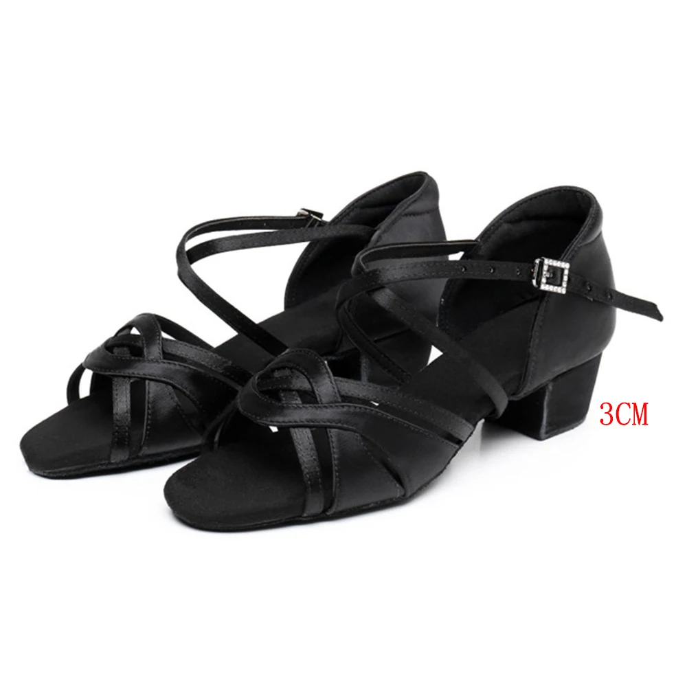 Girls' Silk Salsa Dance Training Shoes Low Heel Soft-soled Latin Competition Dance Shoes