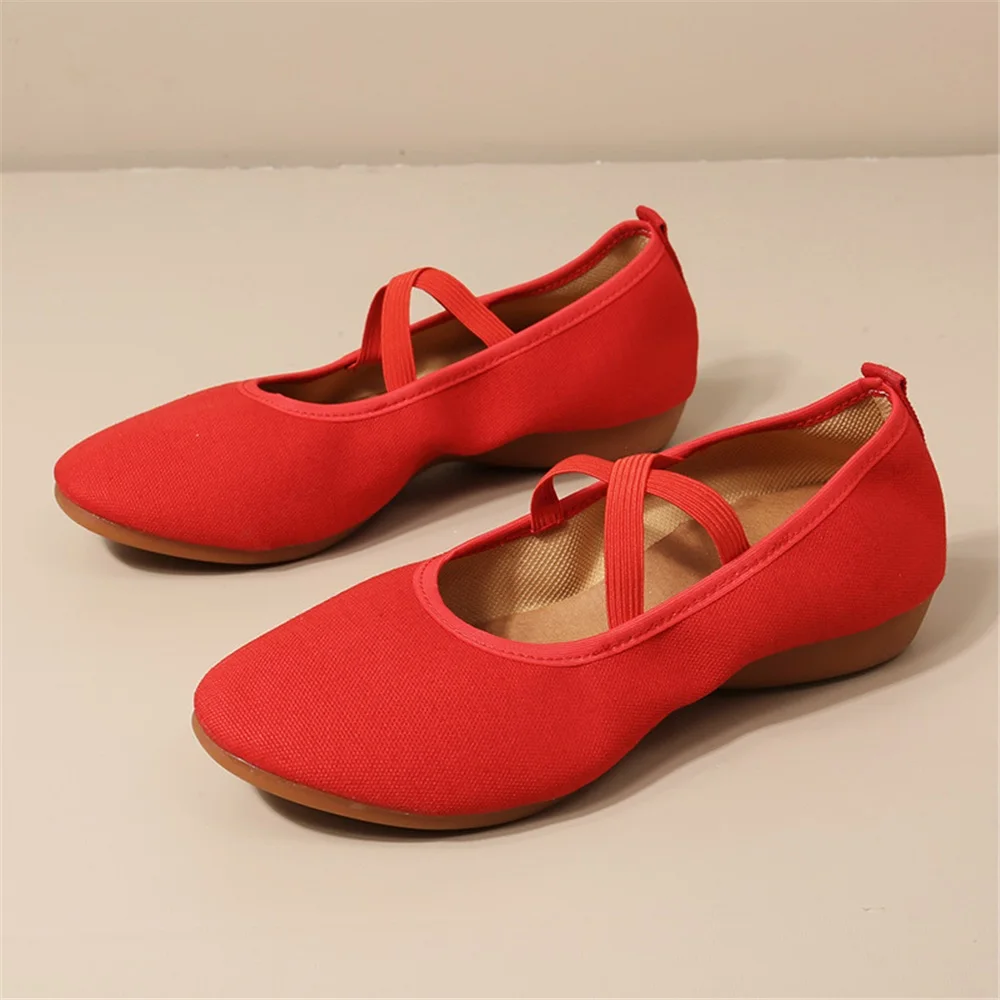 Women Canvas Outdoor Square Dance Shoes Low-Heeled Rubber Soles Wear-Resistant Teacher Training Dance Shoes