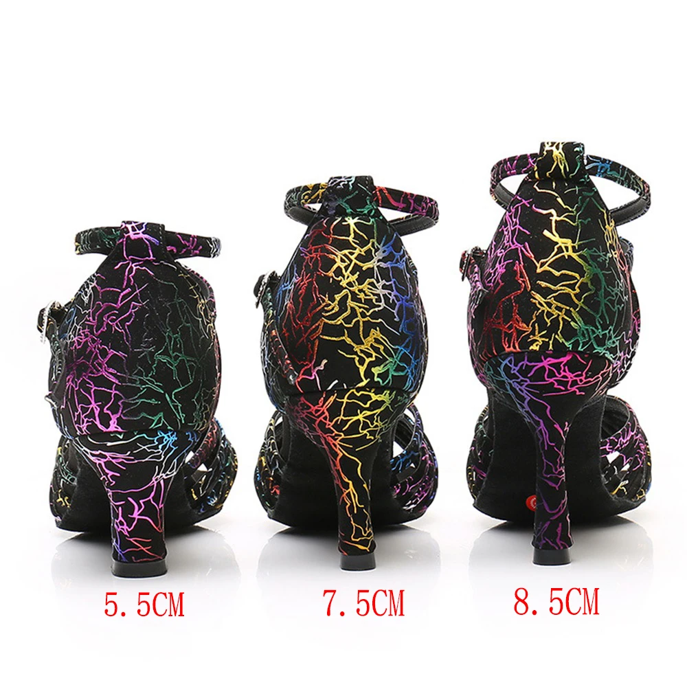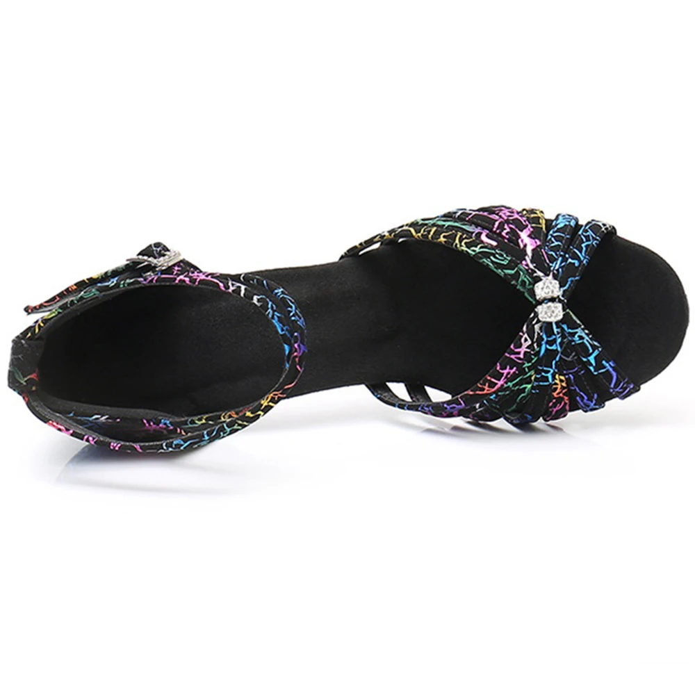 Ladies Satin Color High-Heeled Latin Dance Shoes Soft-Soled Comfort Square Training Shoes