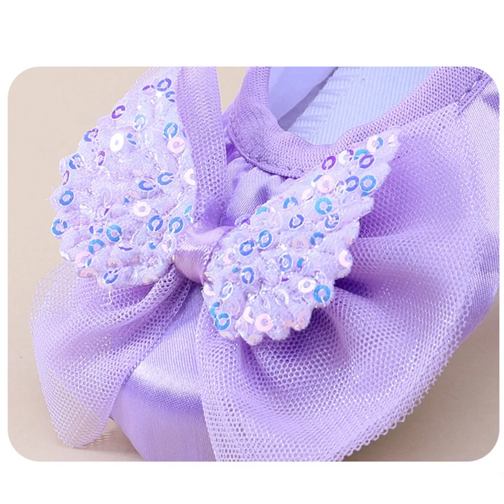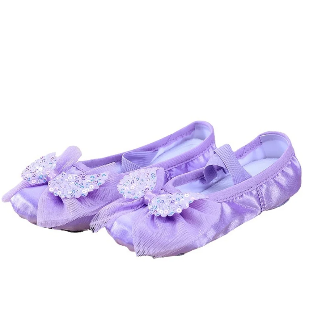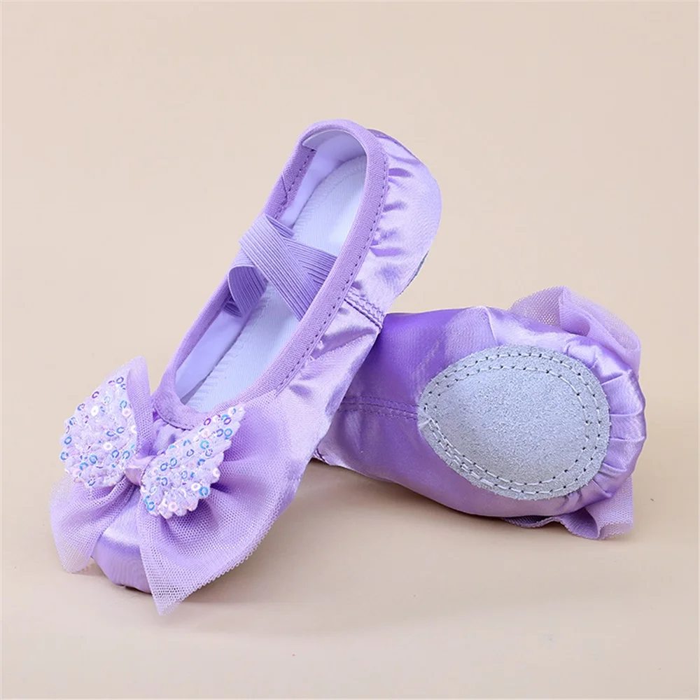 Girls' Latin Dance Soft-Soled Ballet Performance Shoes with Genuine Leather Outsole and Satin Upper Flat-Heeled for Children