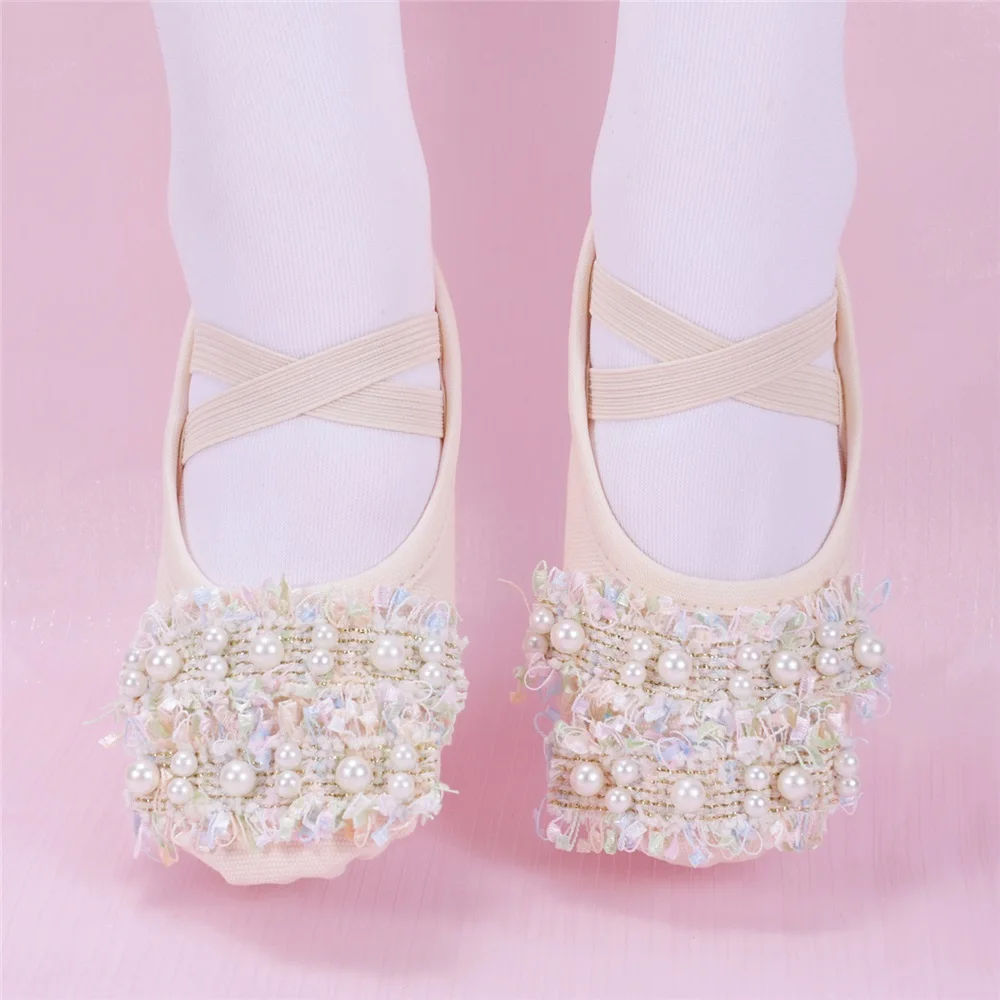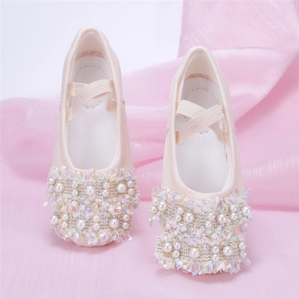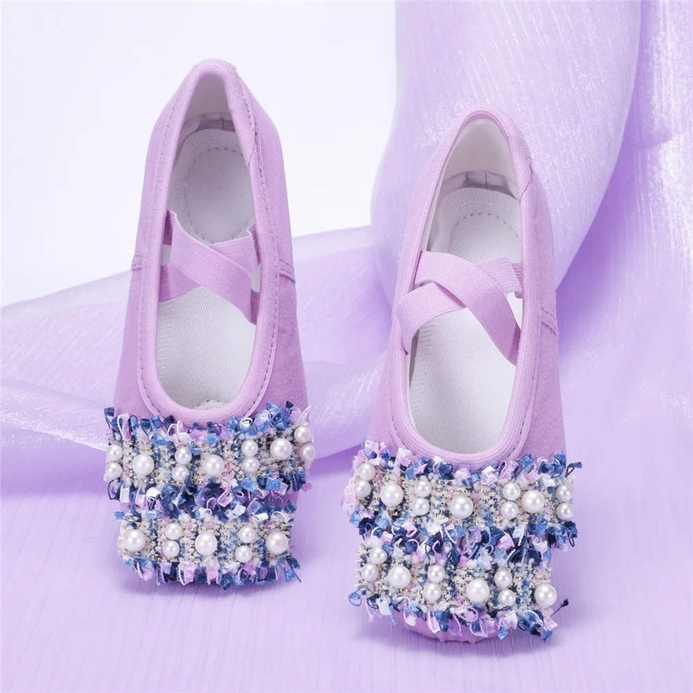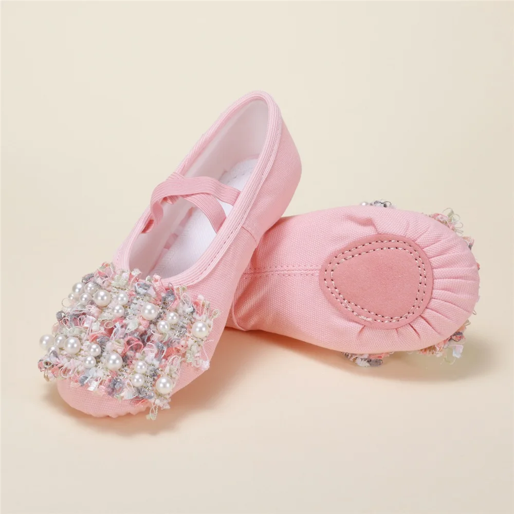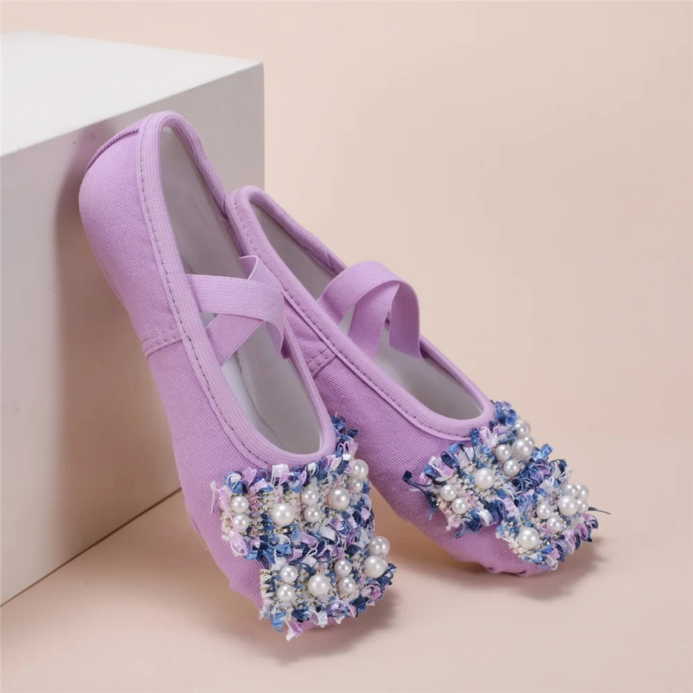 Girls Canvas Ballet Shoes Soft-Soled Children's Performance Shoes Cute Cat Claw Stage Shoes