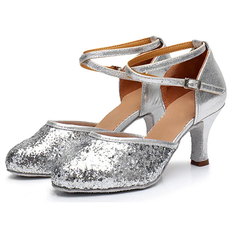 High Quality Women's Ballroom and Latin Dance Shoes with Flash Texture 5/7CM Heel Sequin PU Upper Suede Outsole Durable