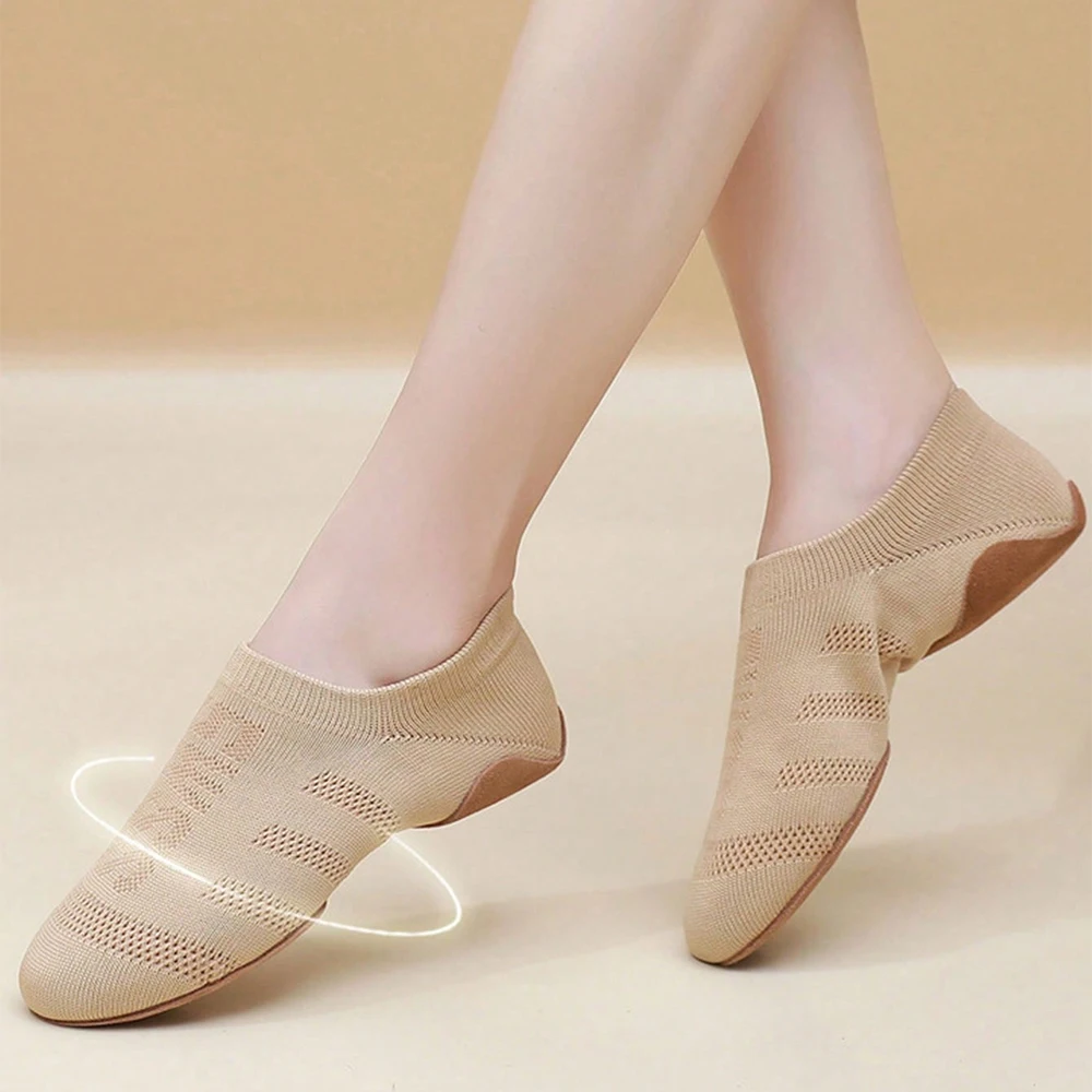 Women's Dance Shoes Indoor Yoga Slippers Breathable Cotton Upper Genuine Leather Sole Low-Heeled Durable Black/Brown Shoes