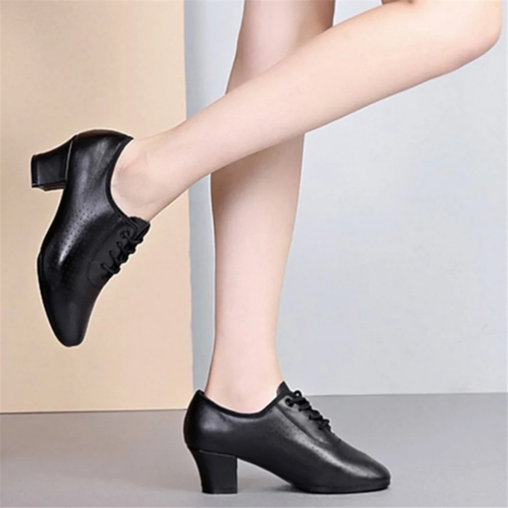 Women's Cowhide Latin Dance Shoes Soft-Soled Ballroom Dancing Training Shoes Adult Square Ballroom Dancing Performance Shoes