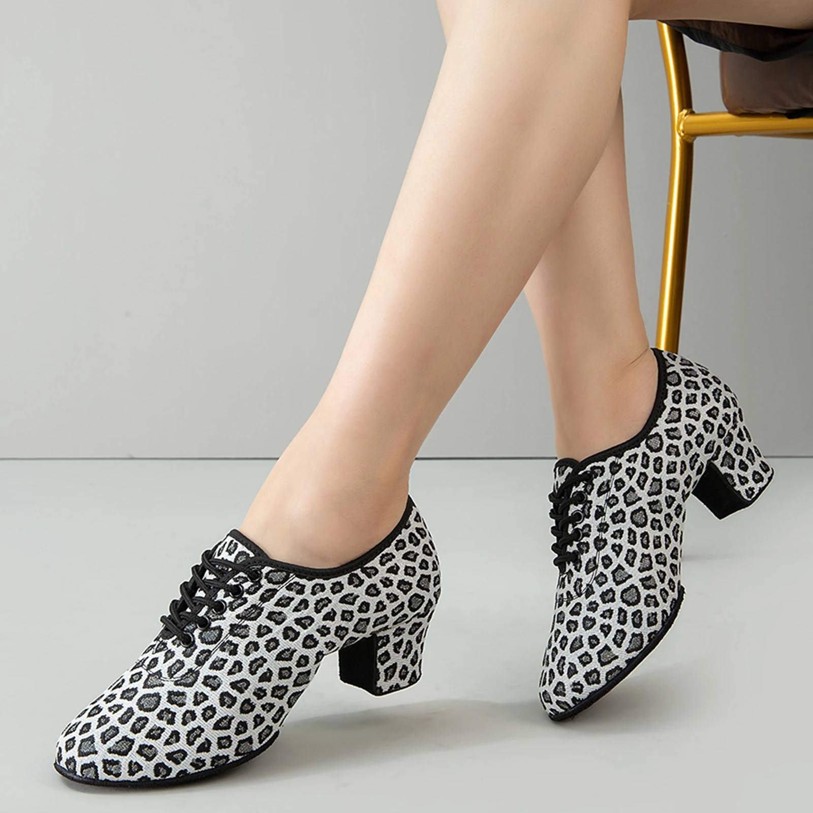Leopard 3.5/5cm Low Heel Latin Dance Shoe Women's Modern Dance Shoes Soft Soled Comfortable Adults Girls Ballroom Dance Shoes