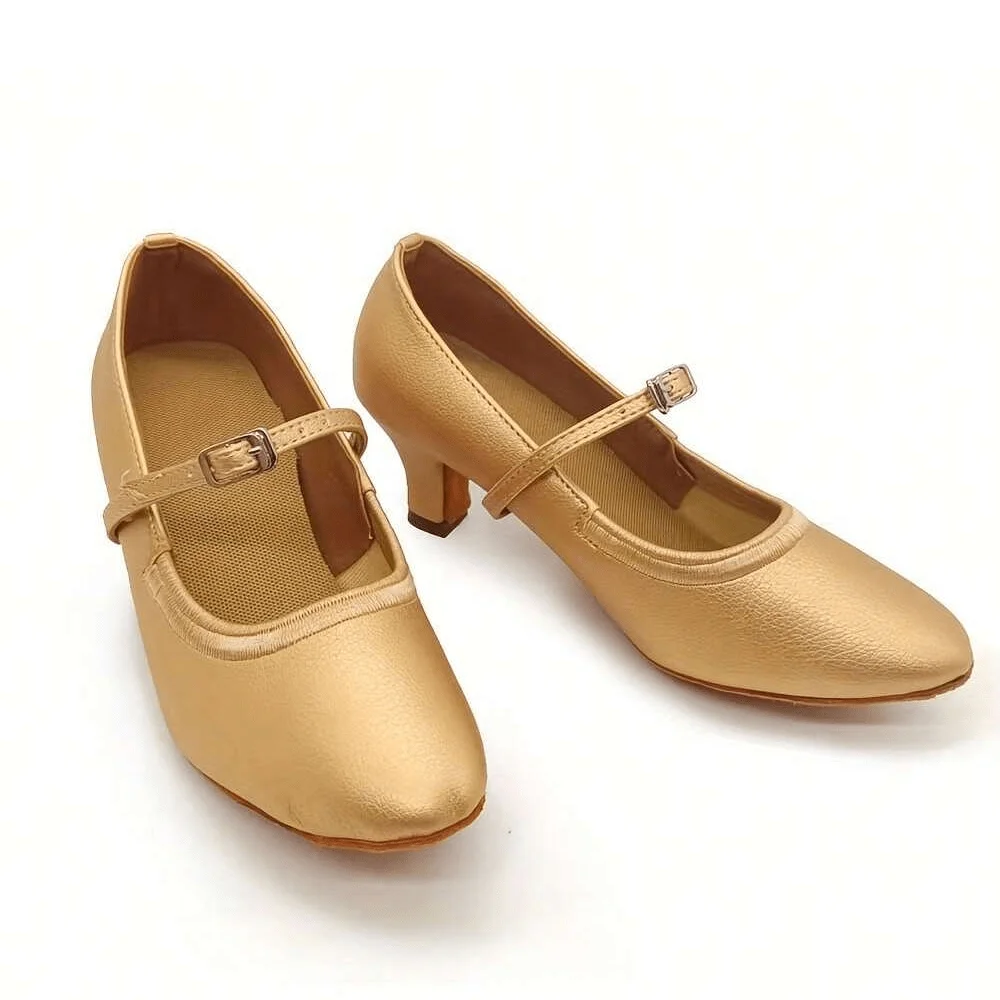 Women's Comfortable Genuine Leather Modern Dance Shoes Low-Heeled Soft-Soled Latin Salsa Performance Shoes