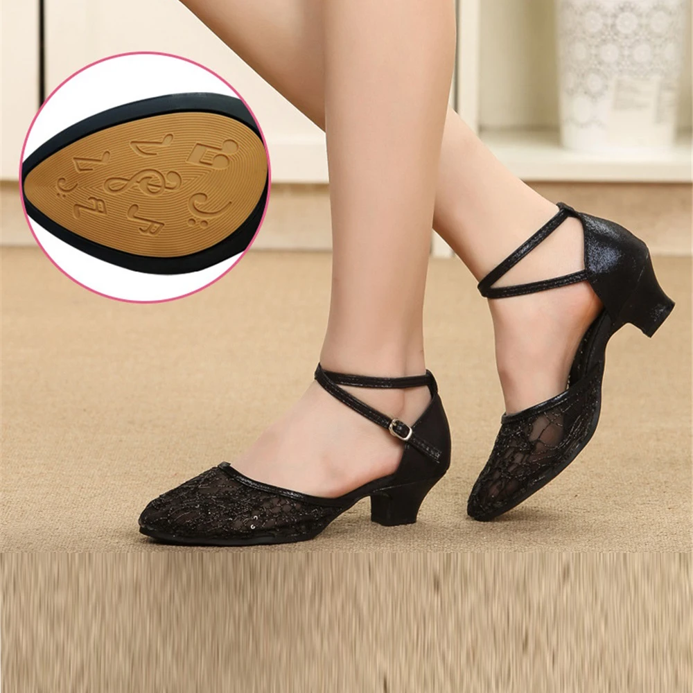 Ladies Latin Dance Shoes High-Heeled Soft-Soled Salsa Dance Shoes Outdoor Rubber-Soled Performance Dance Shoes