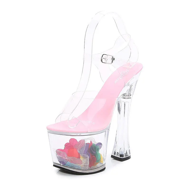17cm Thick Heel Women Pole Dance Shoes Striptease Exotic Nightclub Ladies Sandals Model Catwalk Shoes Women Summer Sandals