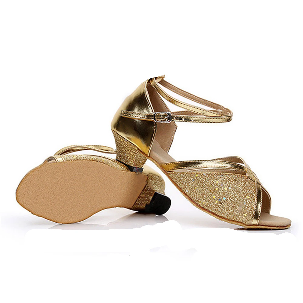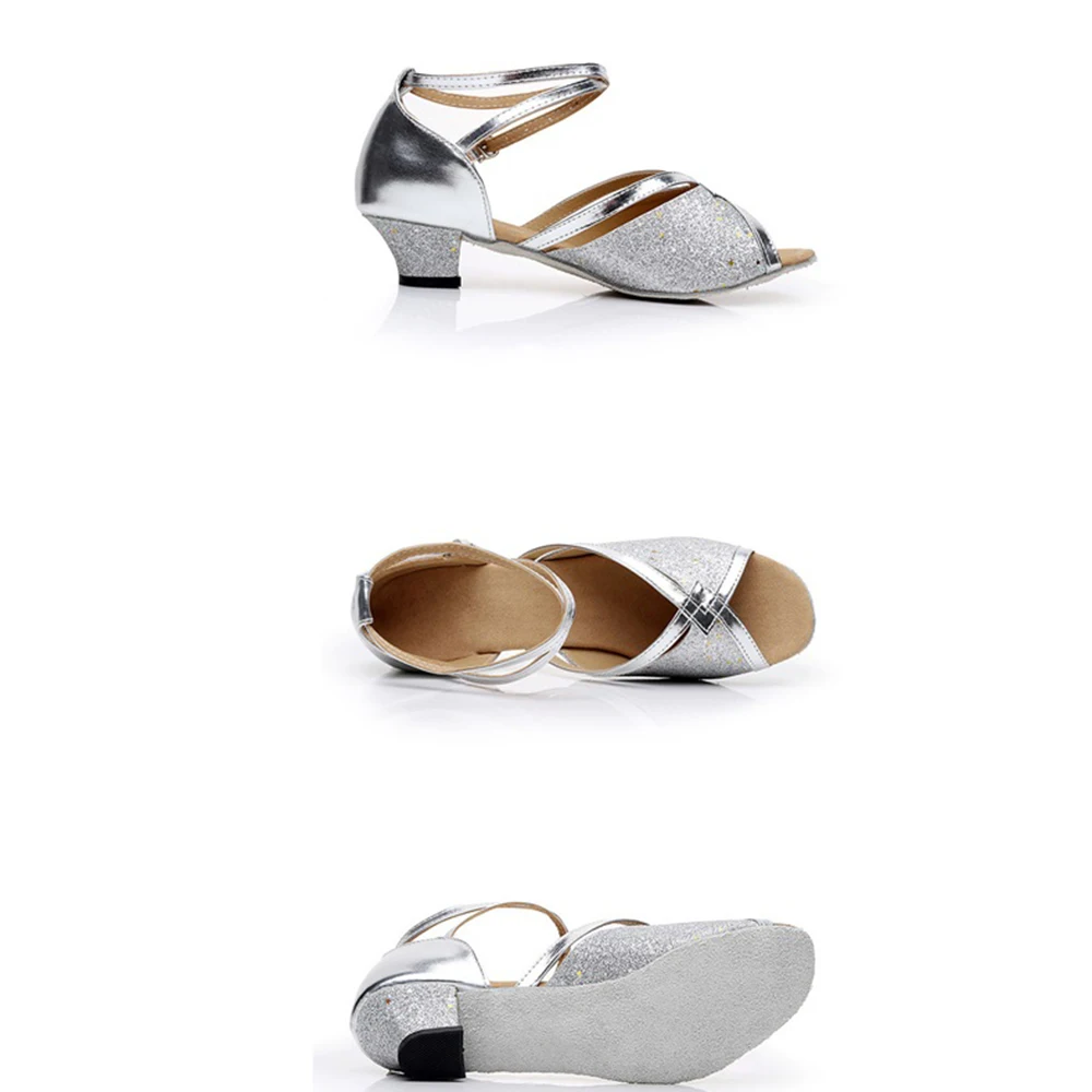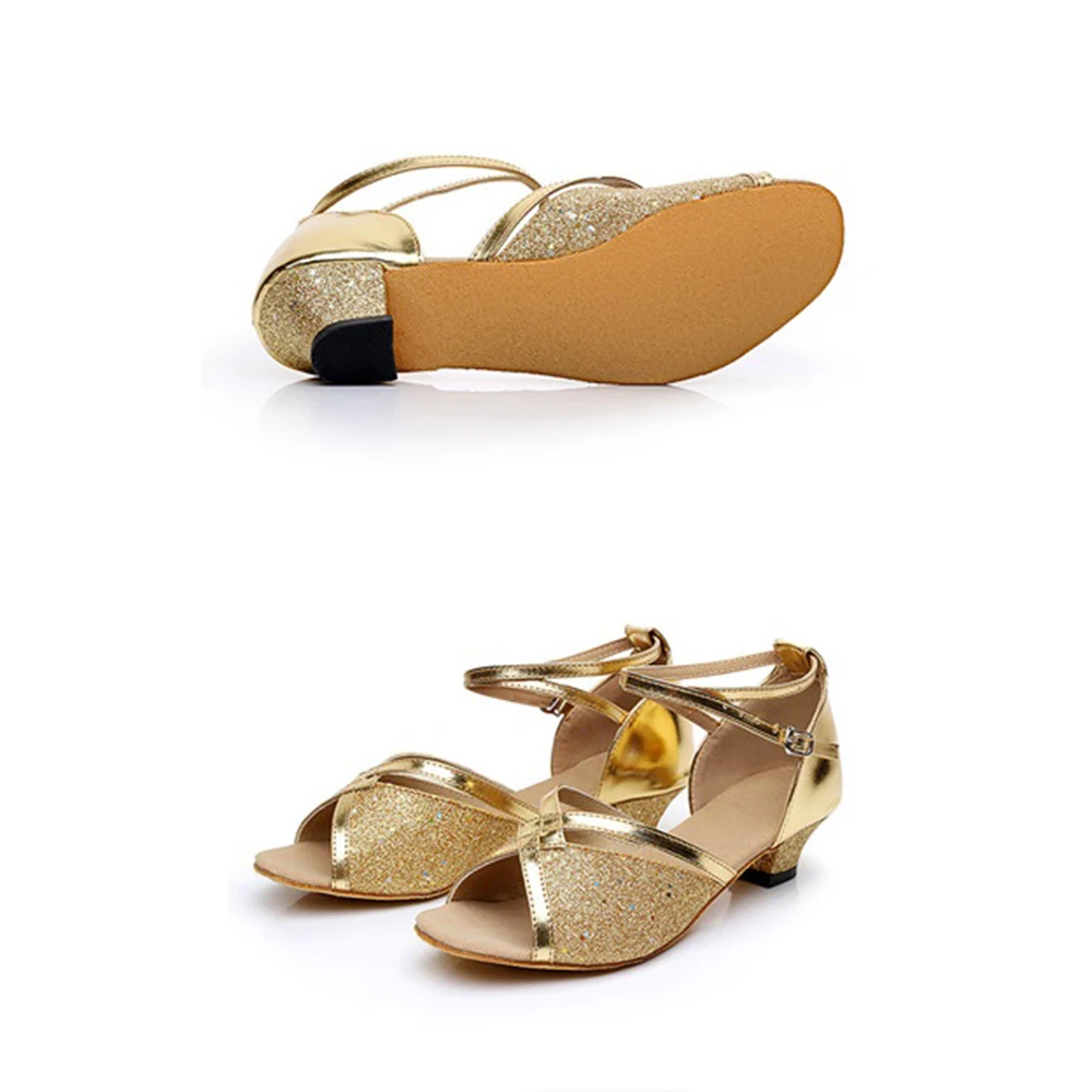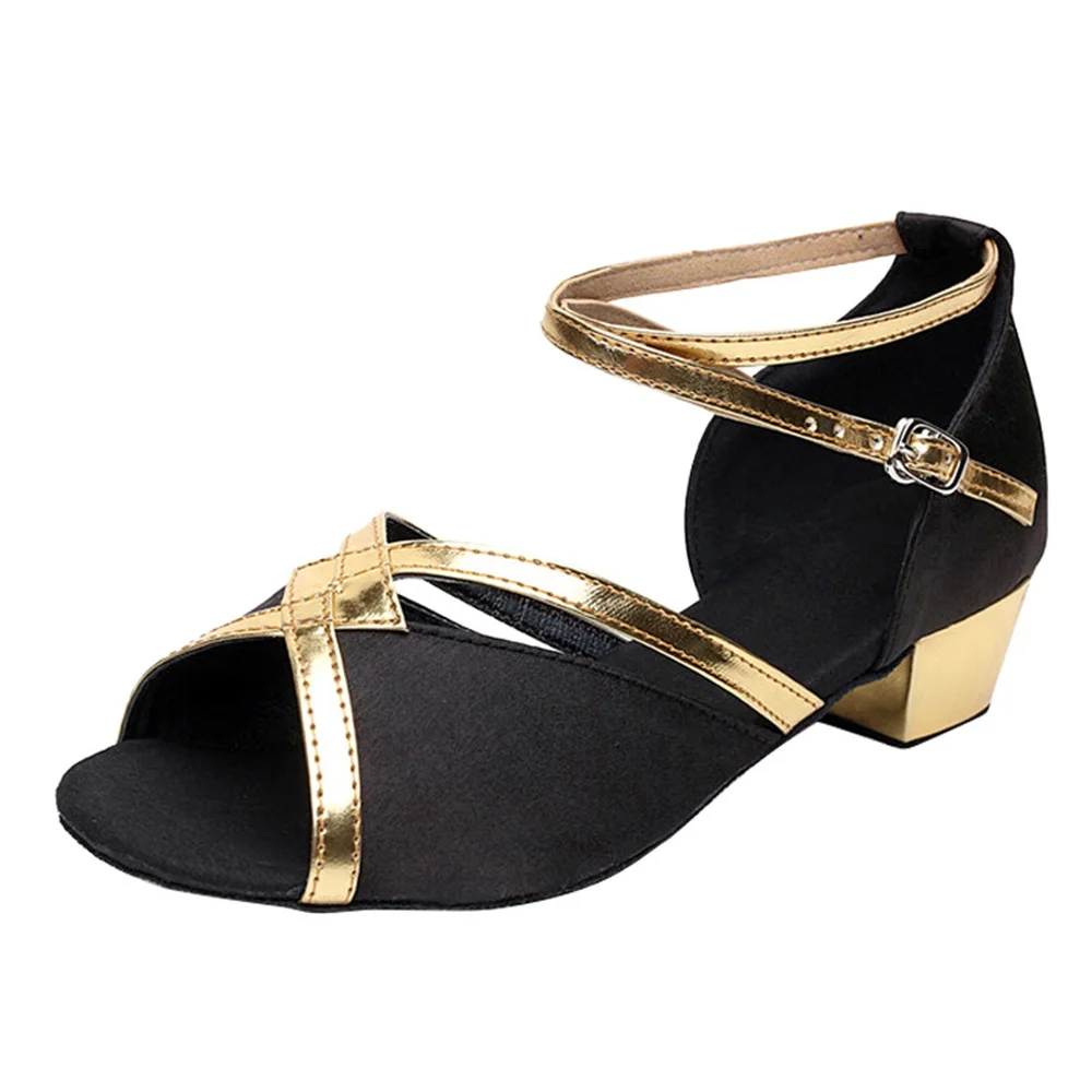 Girls' Latin Dance Shoes Low-Heeled Soft-Soled Salsa Dance Performance Shoes Indoor Outdoor Professional Dance Shoes