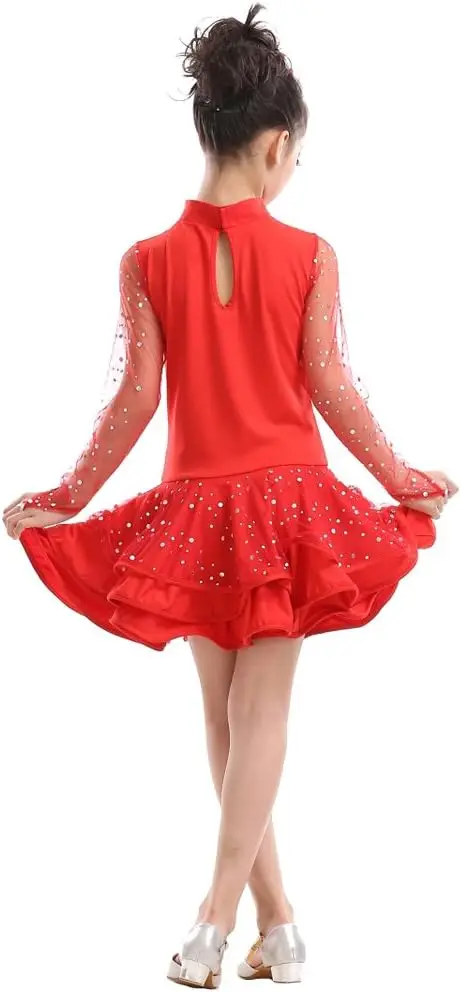 Latin Ball Dress Children Women Dance Costumes Polyester Digital Printing Long Sleeves