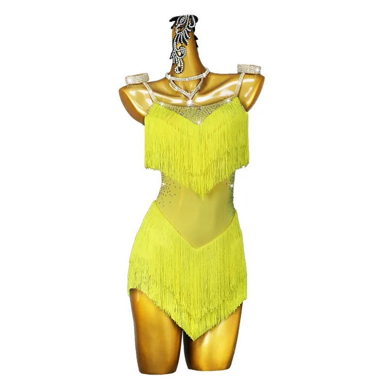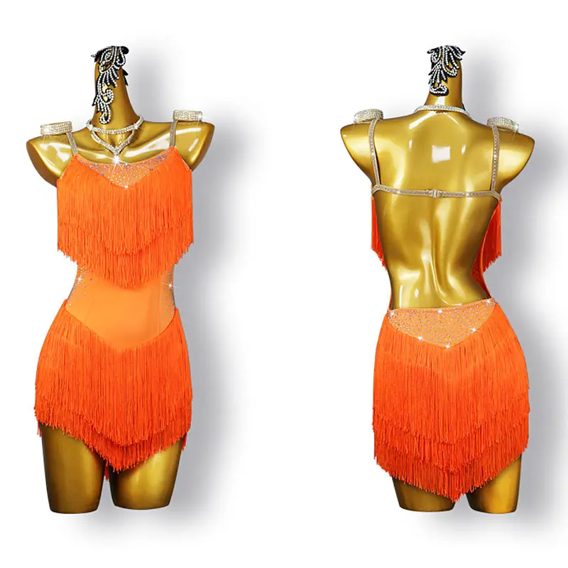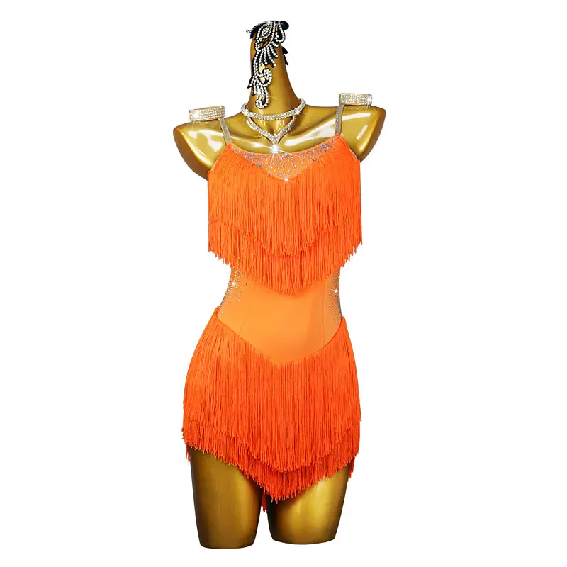 Ladies Competition Latin Dance Costume Performance Girls Latin Dance Dress Rhinestone Tassel Professional Women Latin Dress