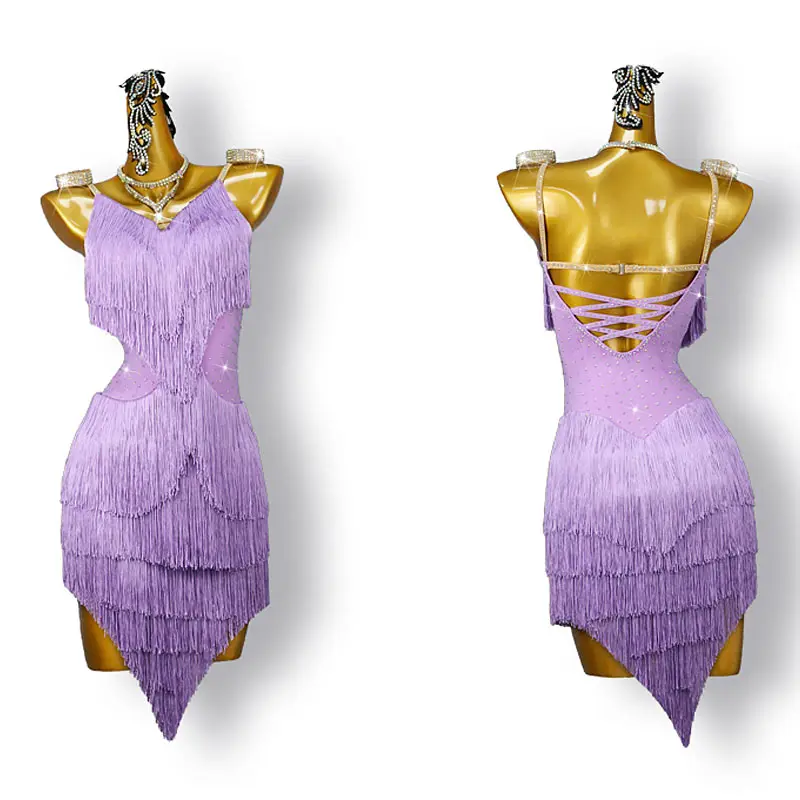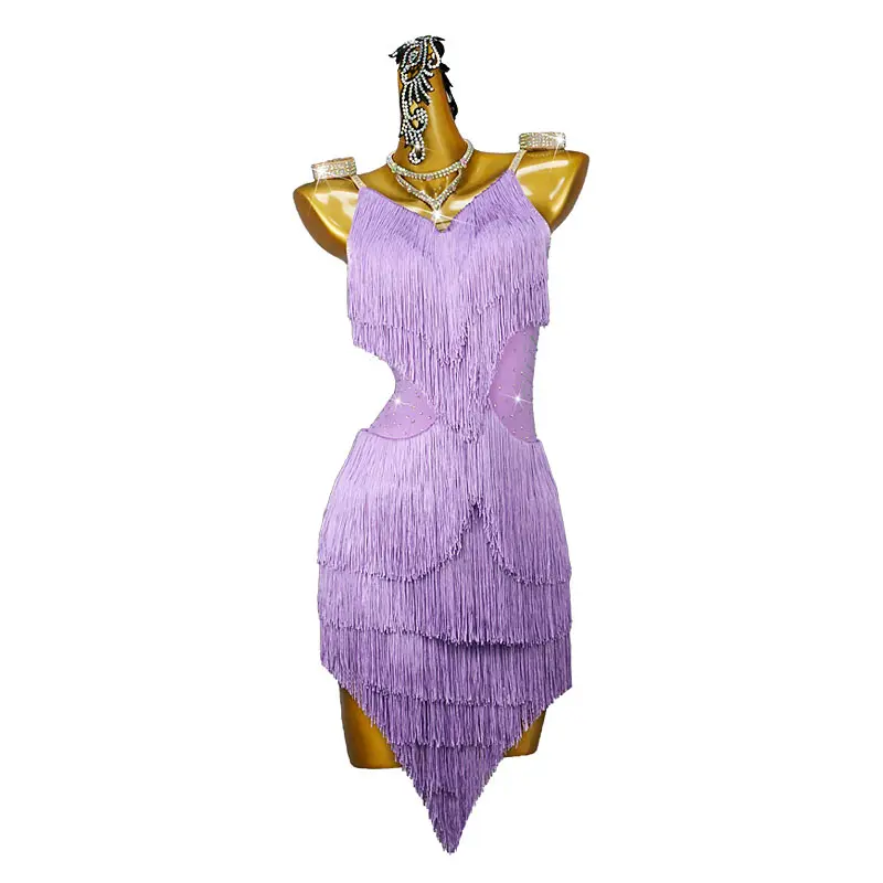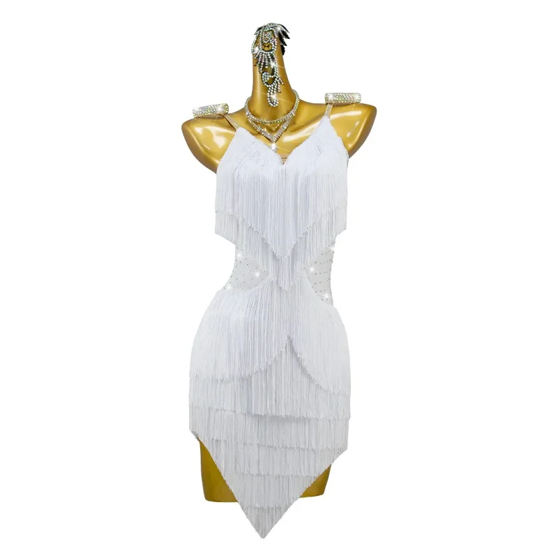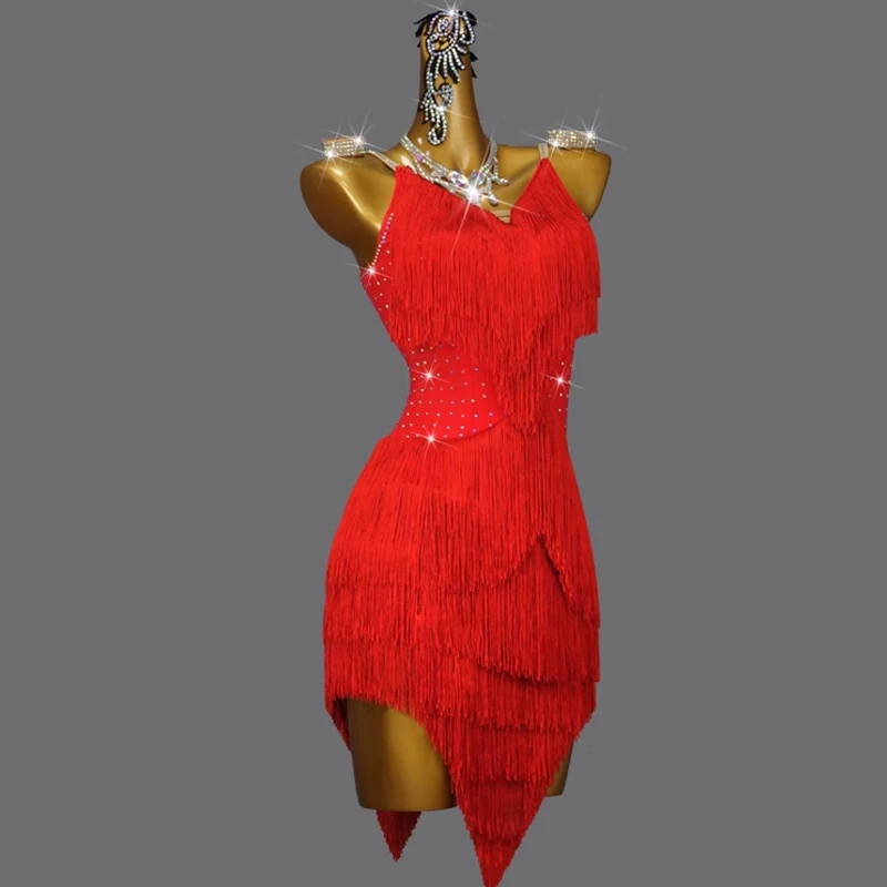 Girls Ballet Dance Dress Sexy Party Clothing Latin Dance Costume Rhinestone Tassel Latin Dance Dress