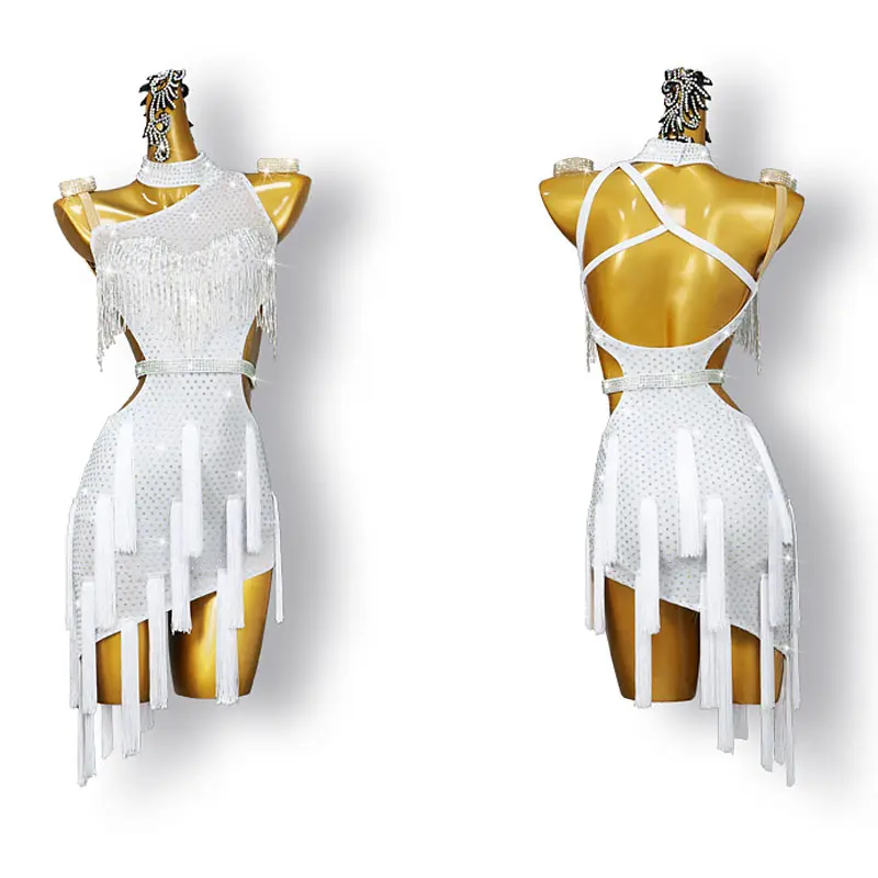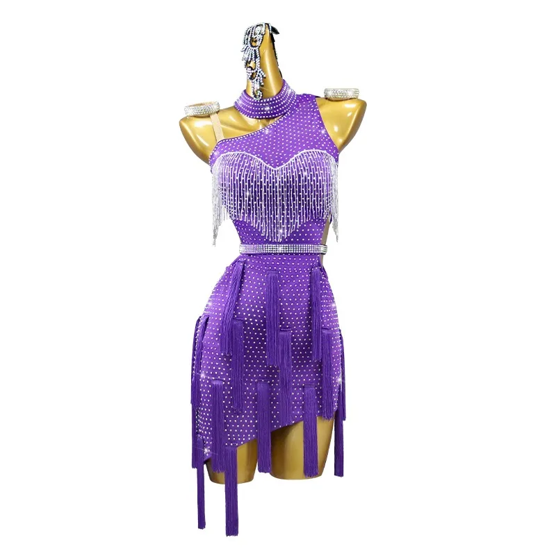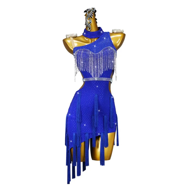 Adults Children Performance Skirt Practice Costume Rhinestone Tassel Ladies Latin Dress Competition Costumes Women Dancewear