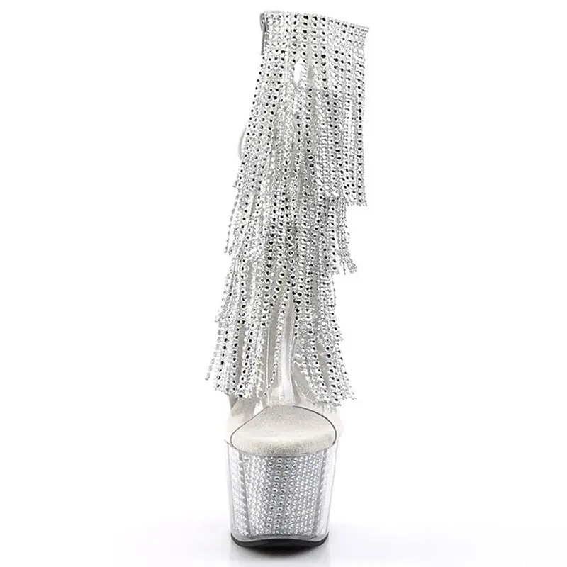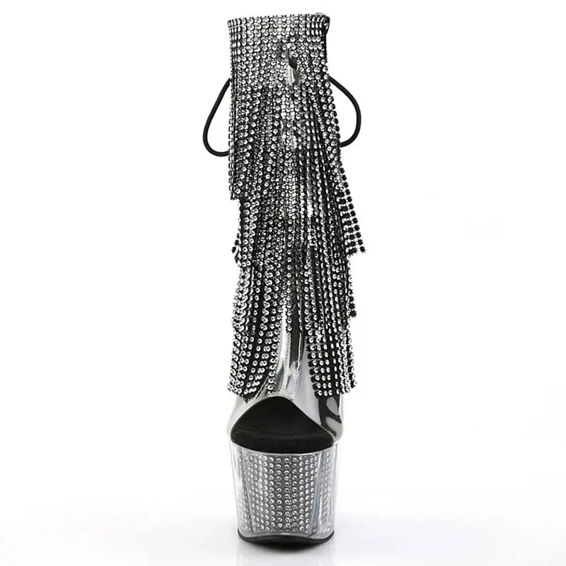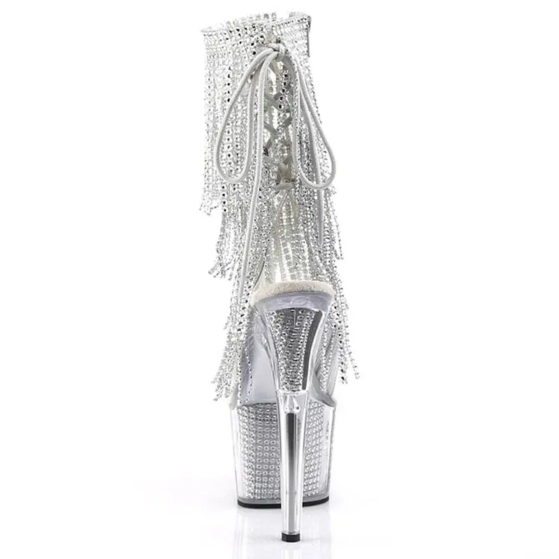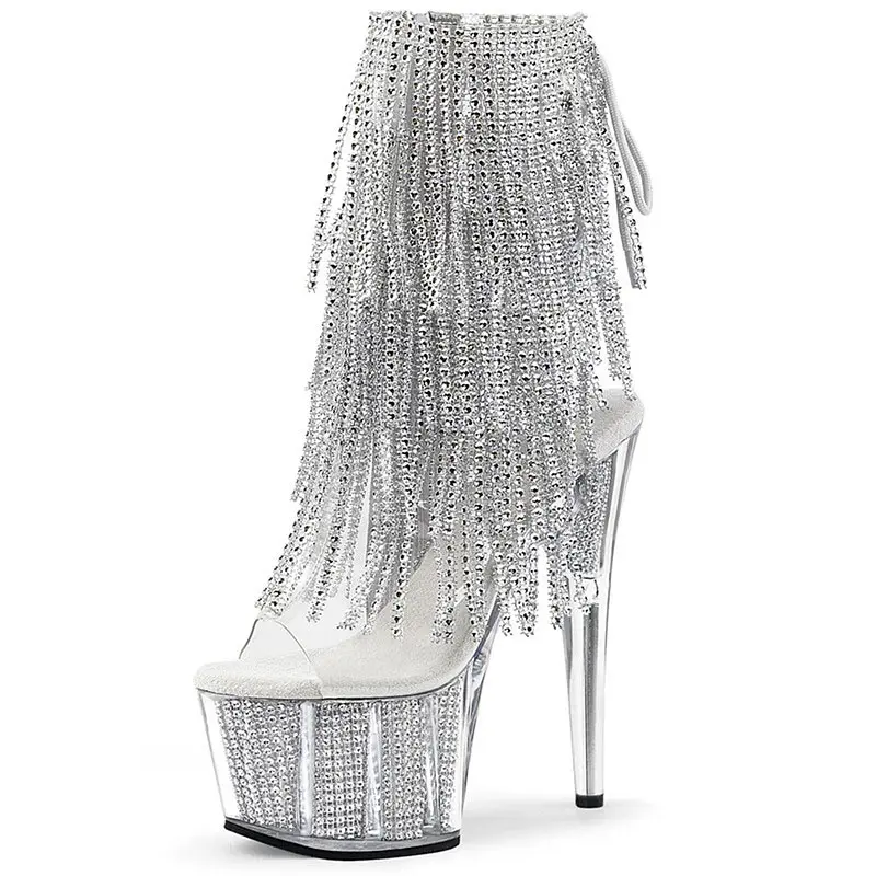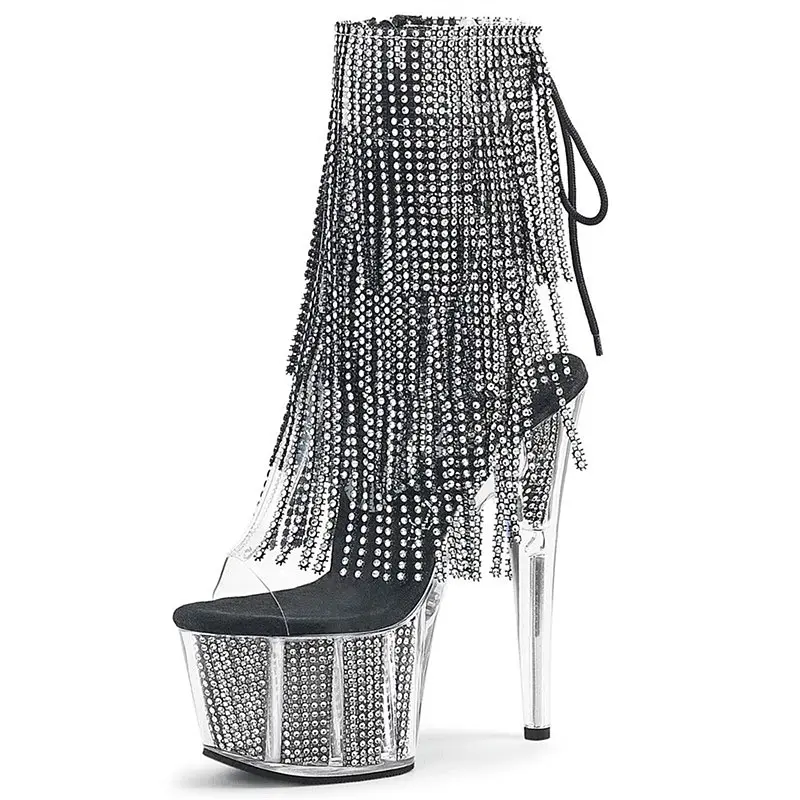 Women Tassel Pole Dance Shoes Ankle Boots Super High Heel Platform Ladies Stripteaser Boots