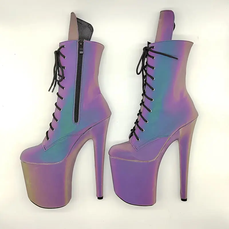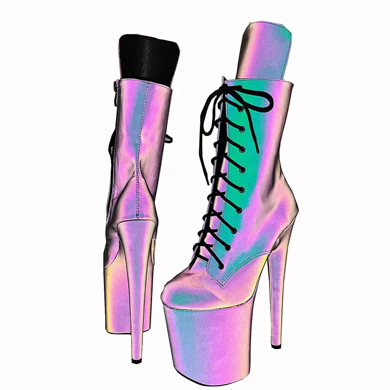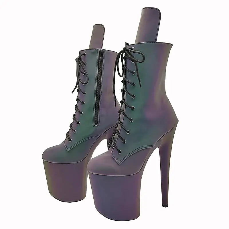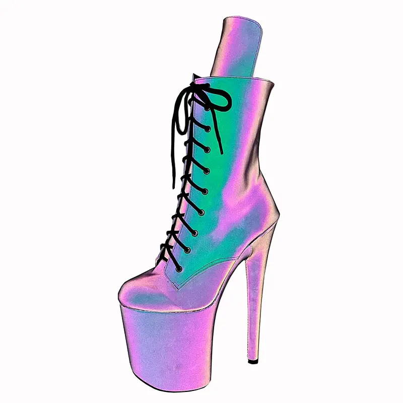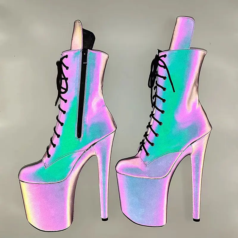 20cm Women Pole Dance Shoes Reflective Ankle Boots Sexy Ladies Nightclub Striptease Boots