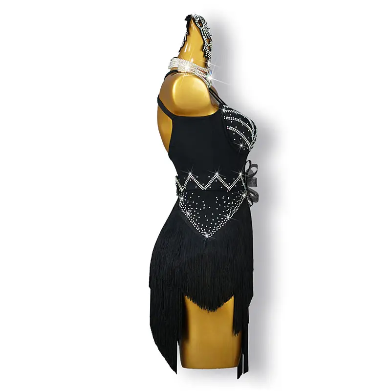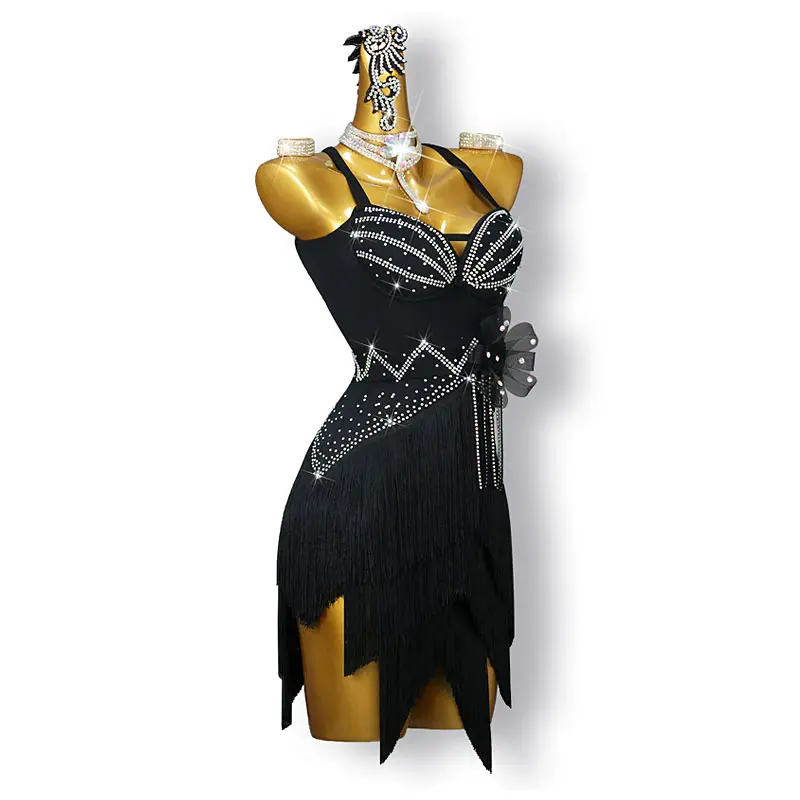 Sleeveless Performance Dress for Women New Latin Dance Dress Costume with Rhinestone Stage Performance Skirt
