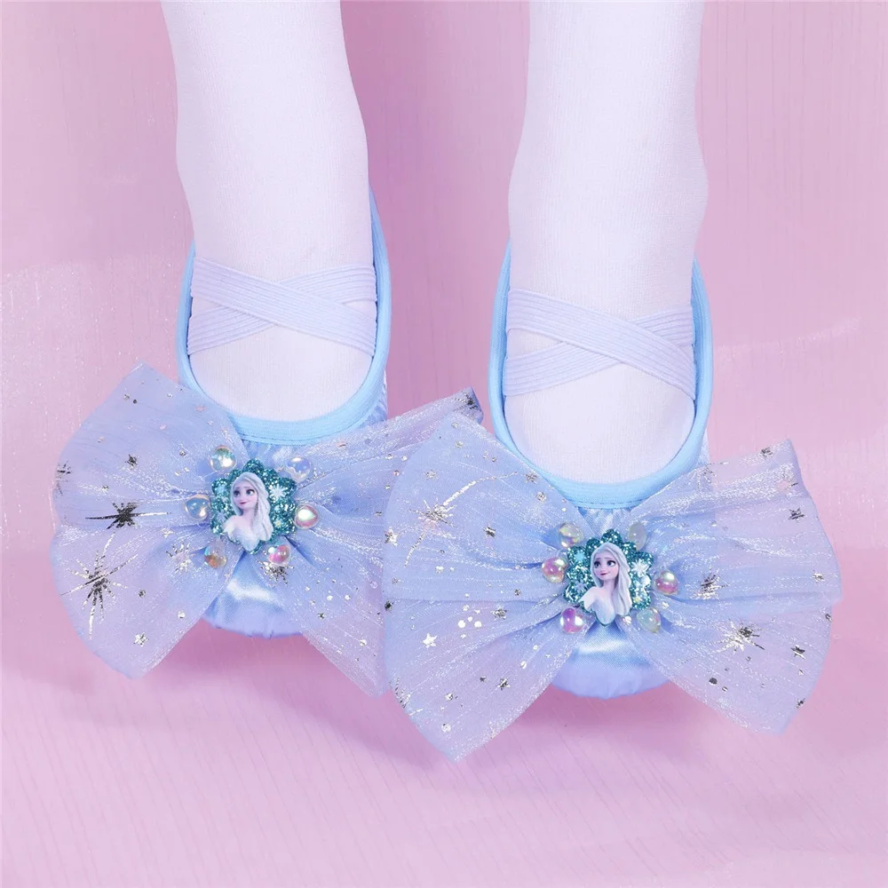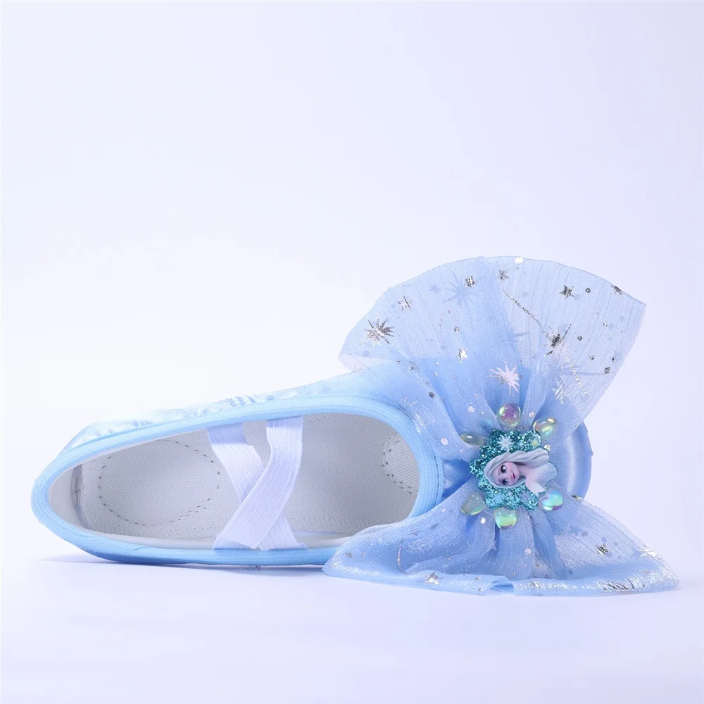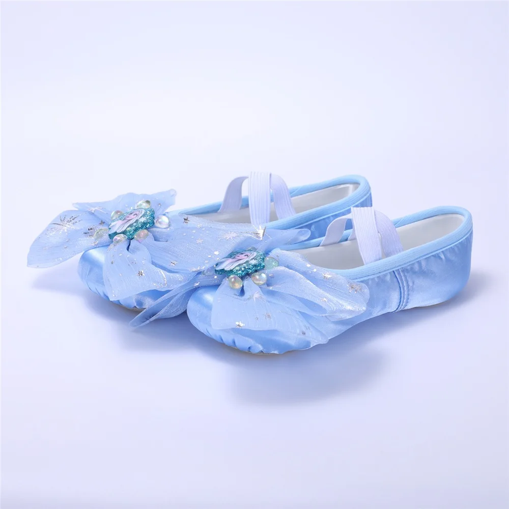 Girls' Soft-Soled Genuine Leather Outsole Satin Ballet Shoes for Children's Stage Use with Cotton Lining