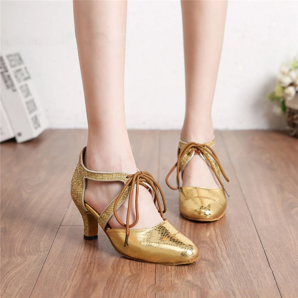 Ladies Shiny Latin Dance Shoes High-Heeled Soft-Soled Salsa Dance Competition Shoes Adult Indoor Party Dance Shoes