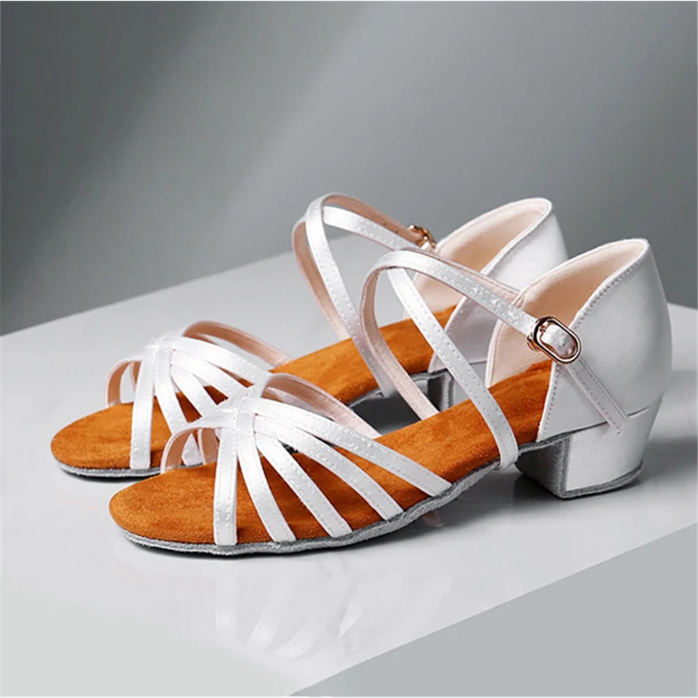 Girls' Satin Latin Dance Shoes Indoor Basic Salsa Dance Shoes Low-heeled Soft-soled Tango Dance Shoes