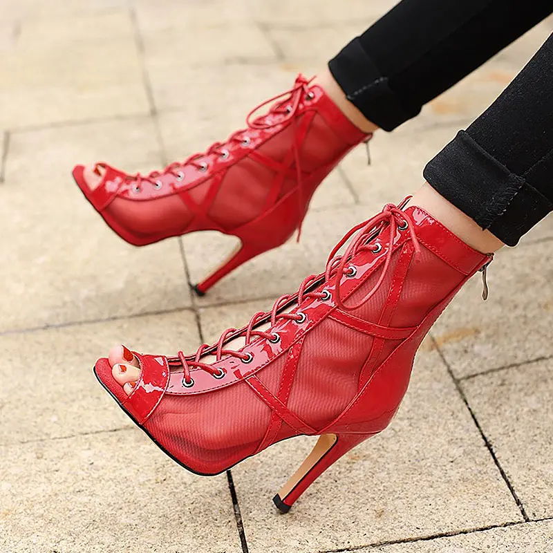 Women's Latin Dance Shoes for Ballroom Tango Salsa-Mesh Upper Suede Sole 7.5-10cm Heels Cotton Lining Durable