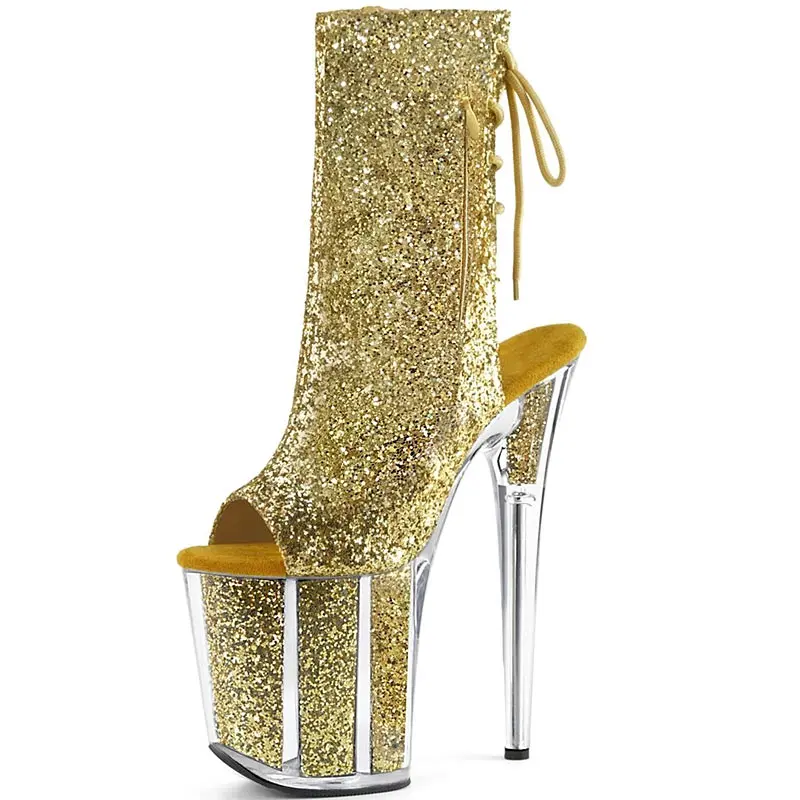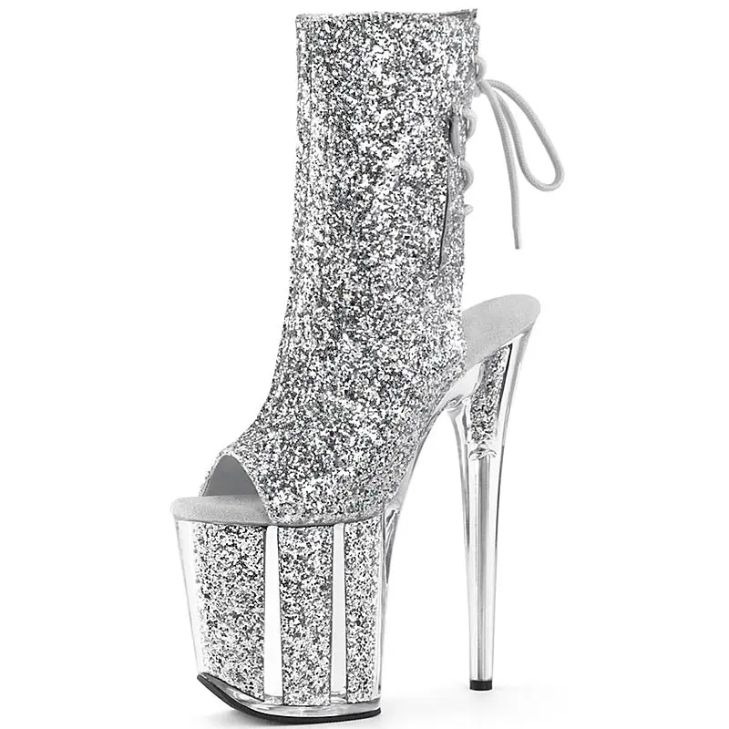 Women's Nightclub Shoes Sequined Ankle Boots Sexy Ladies Pole Dance Boots High Heel 20cm Ladies' Dance Shoes