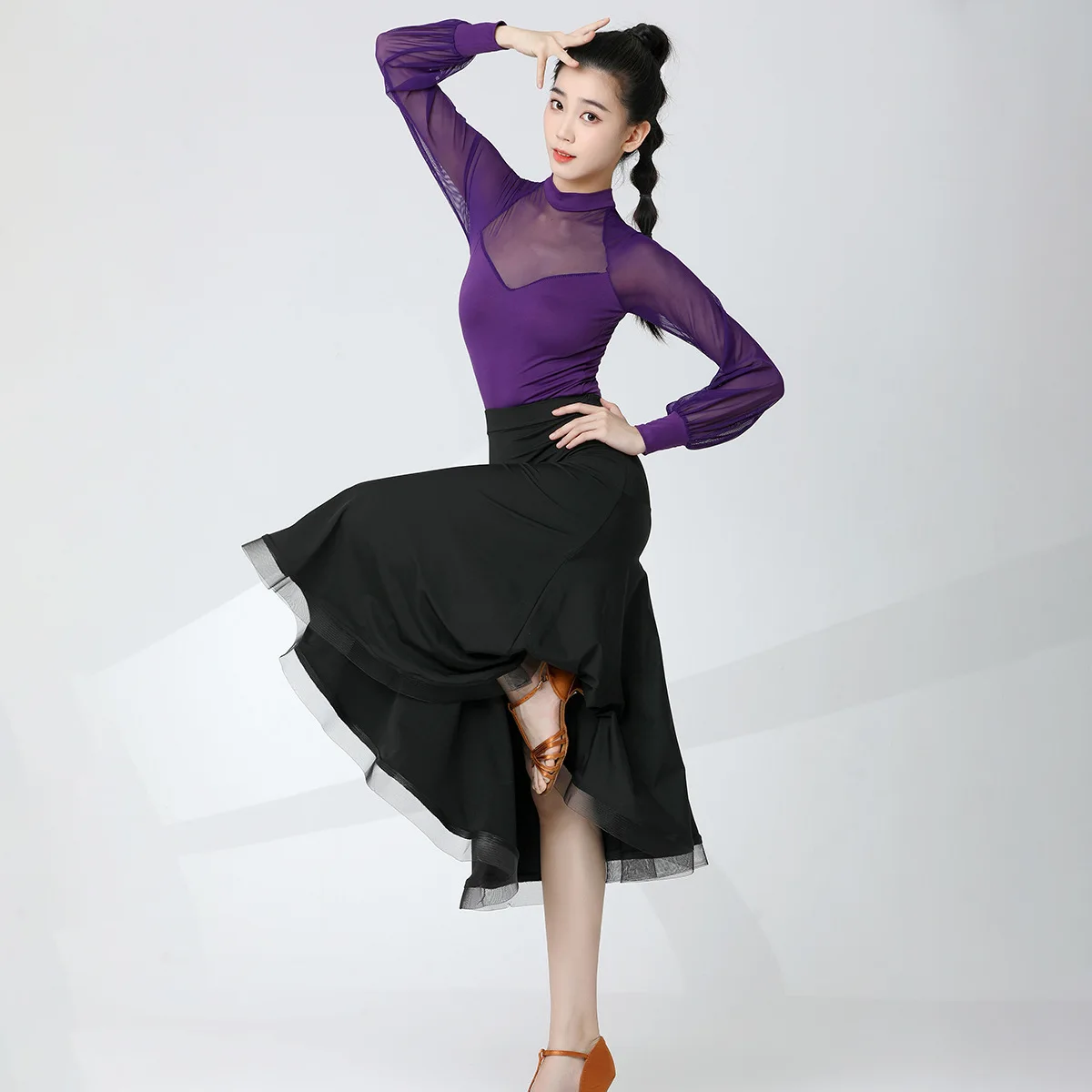 Modern Dance Adult Female Practice Dance Costume Long Sleeve Cha-Cha Top Latin Dance Ballet Dance Dress