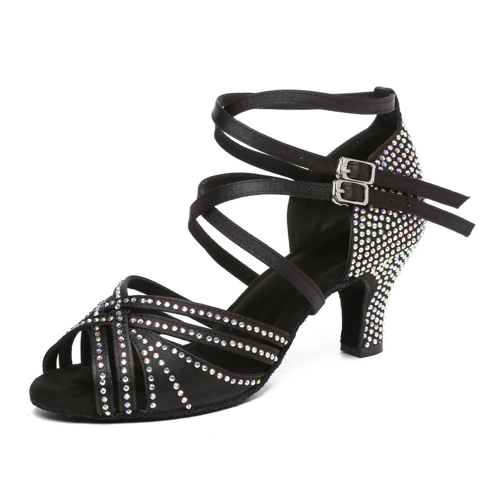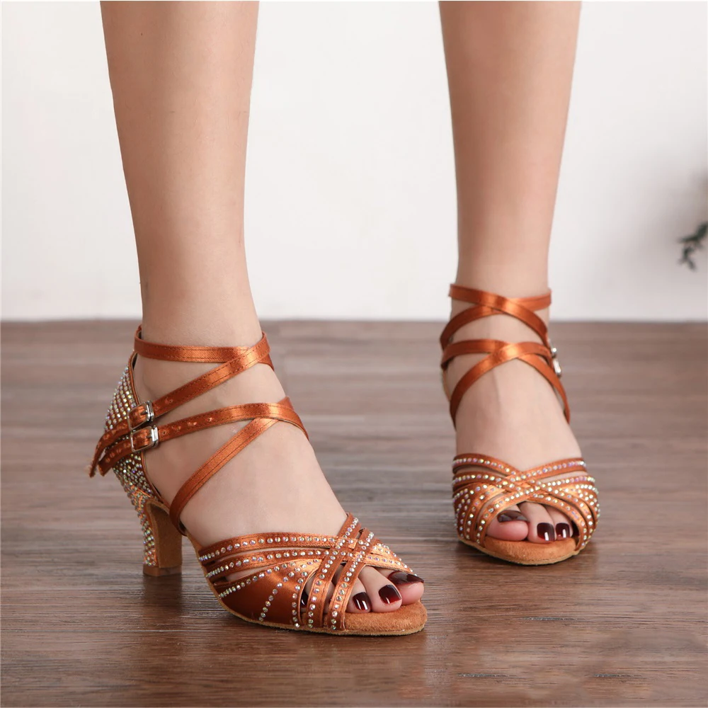Ladies Satin Latin Dance Shoes High-Heeled Soft-Soled Salsa Stage Performance Shoes Indoor Non-Slip Ballroom Dancing Shoes