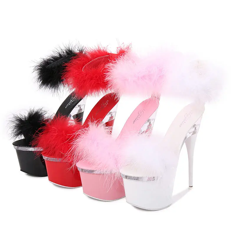 Factory Wholesale Sexy Ladies Party Sandals Mink Fur Exotic Dance Shoes Women High Heel Sandals