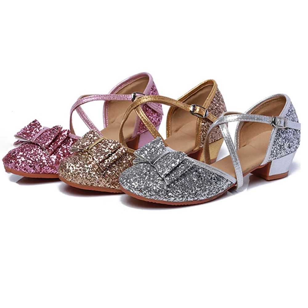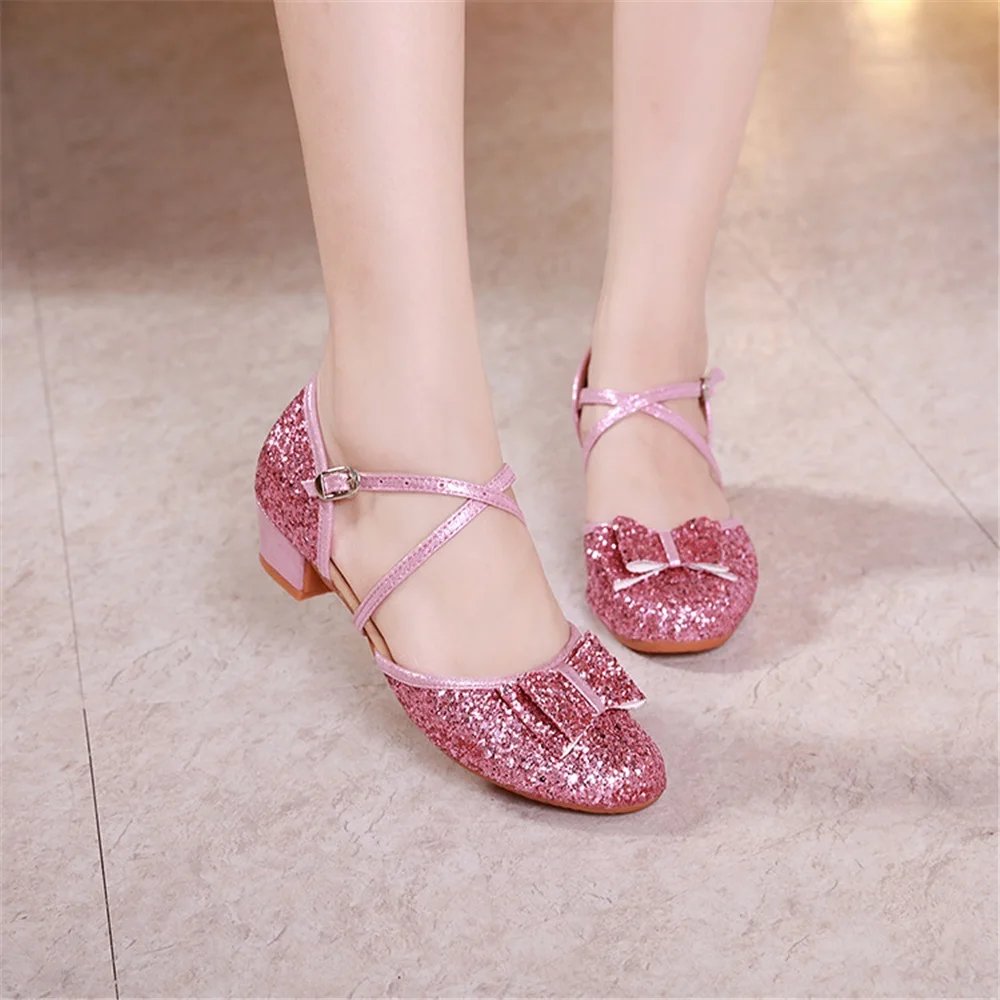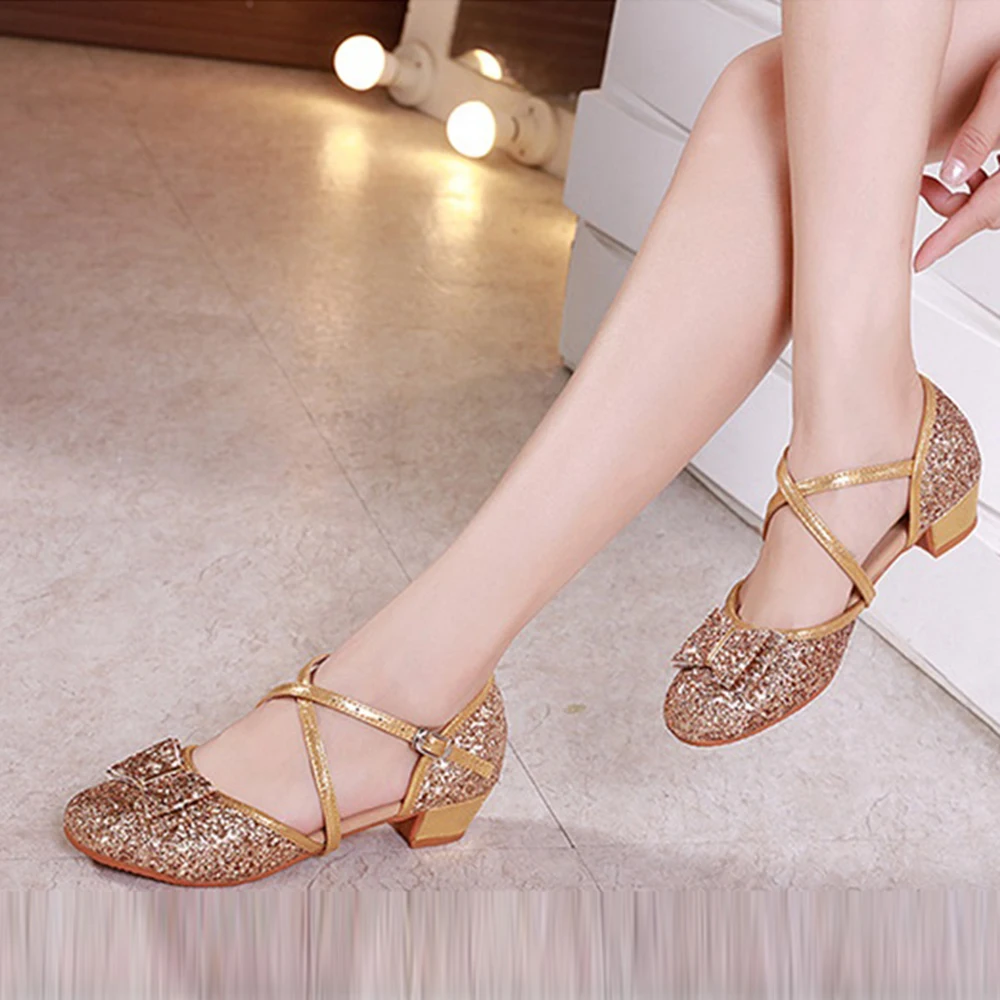 Girls' Low-Heeled Soft-Soled Latin Dance Performance Shoes Indoor Suede Non-Slip Stage Performance Salsa Dance Shoes