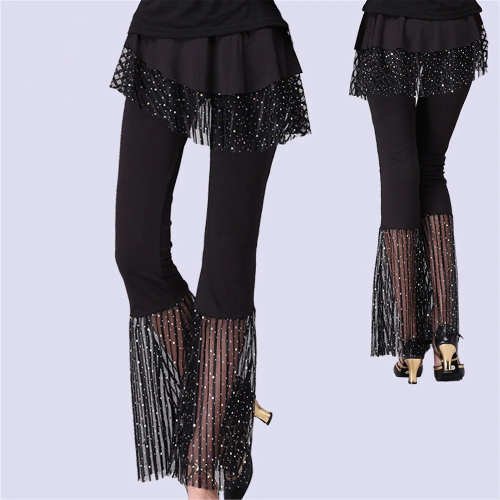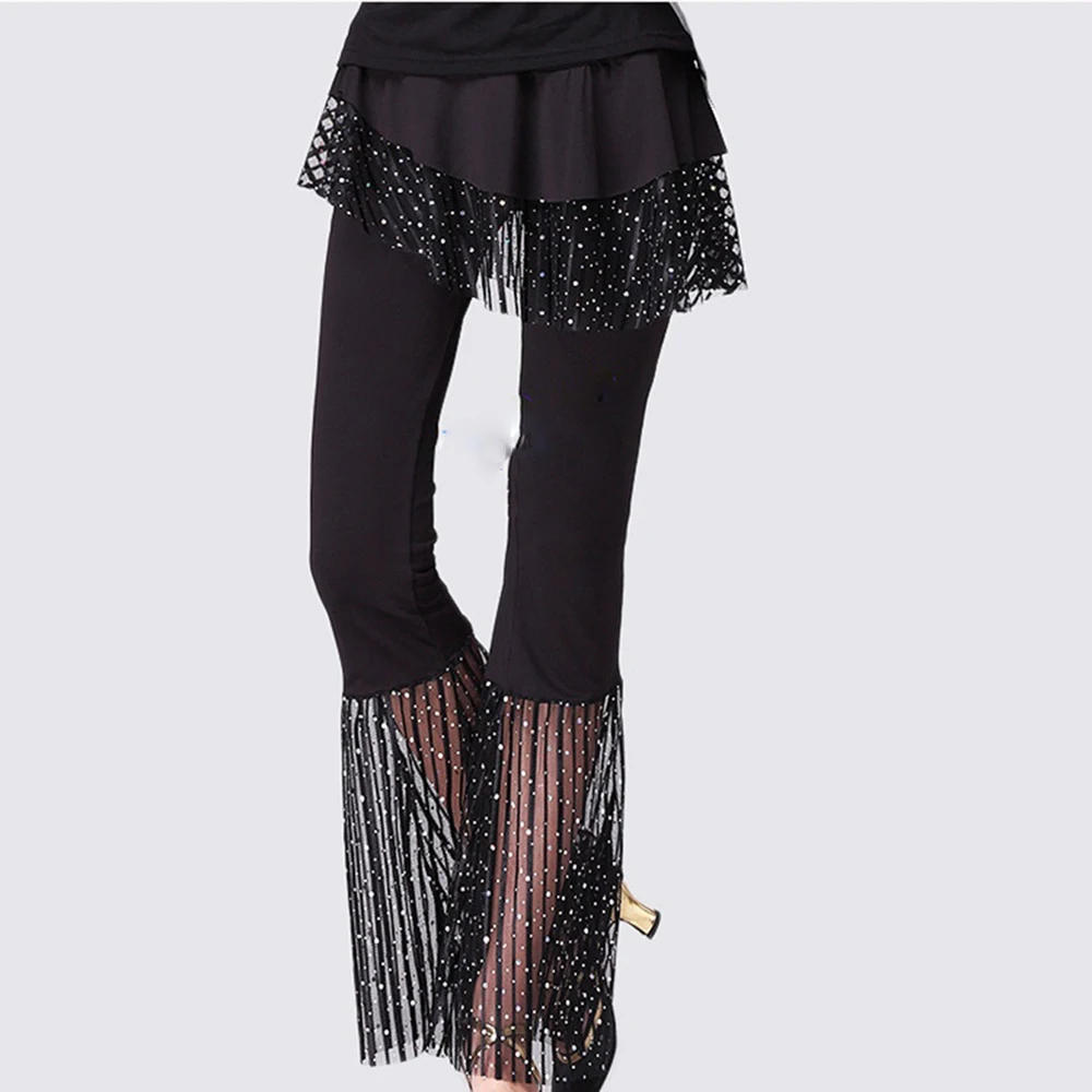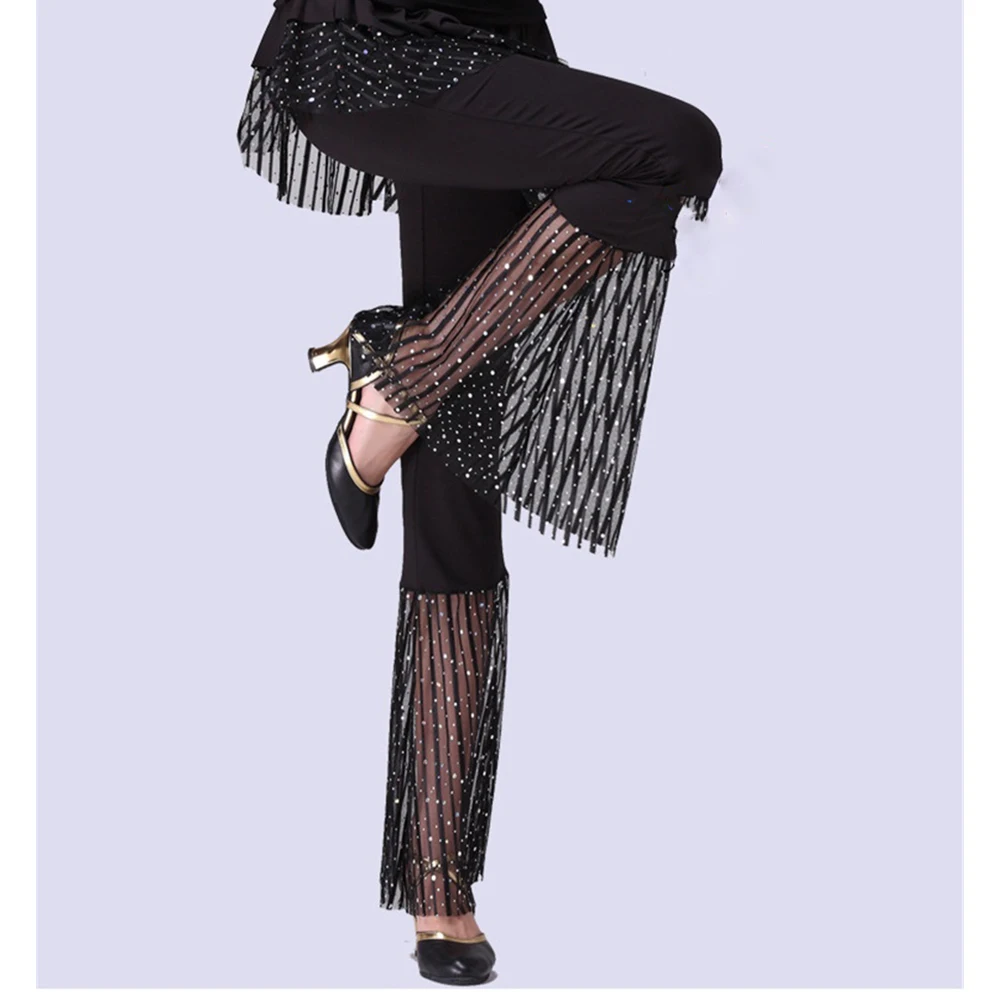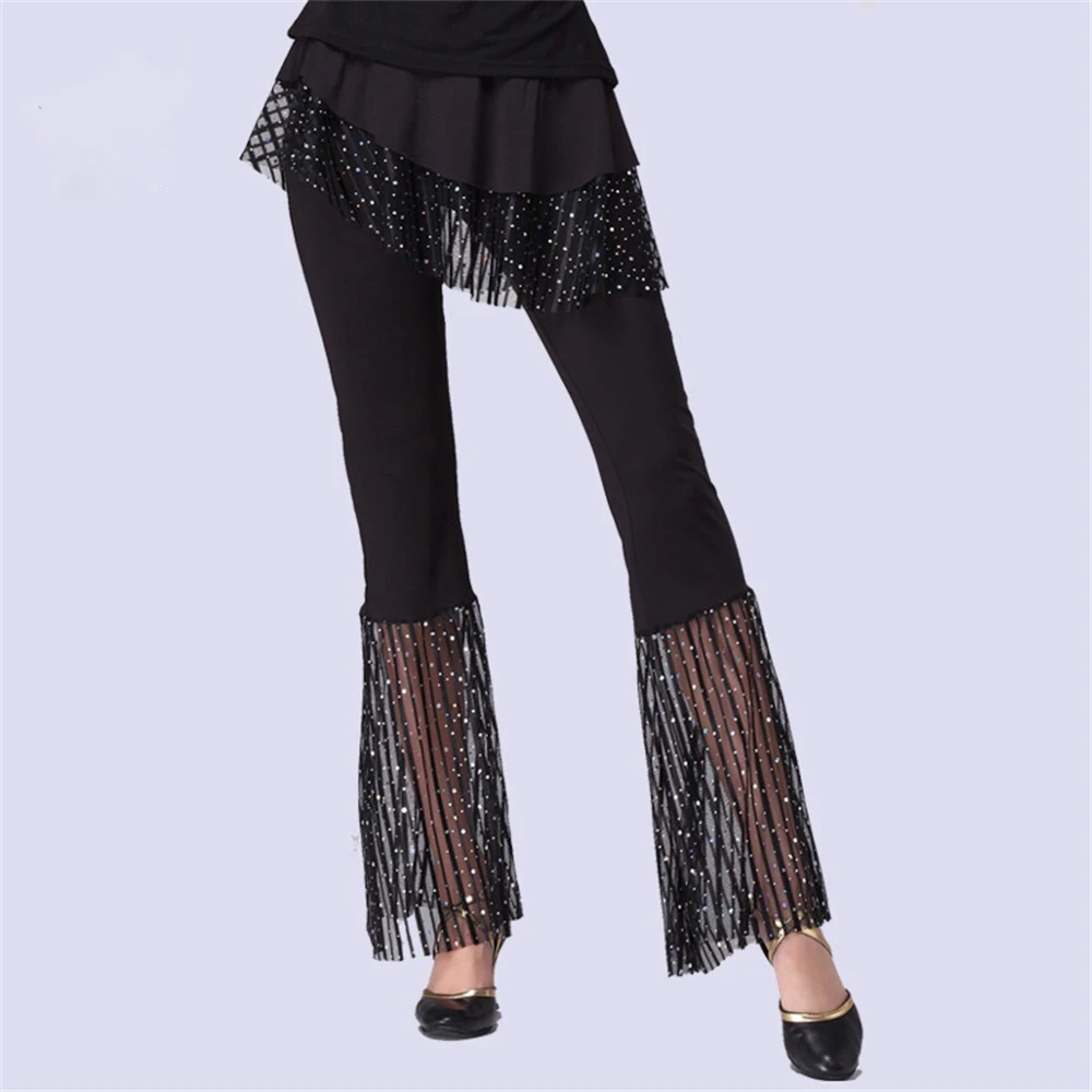 Women's Ballroom Dancewear Pants Skirt Sequined Elastic Waist Soft Breathable Spandex/Polyester Stage Costume