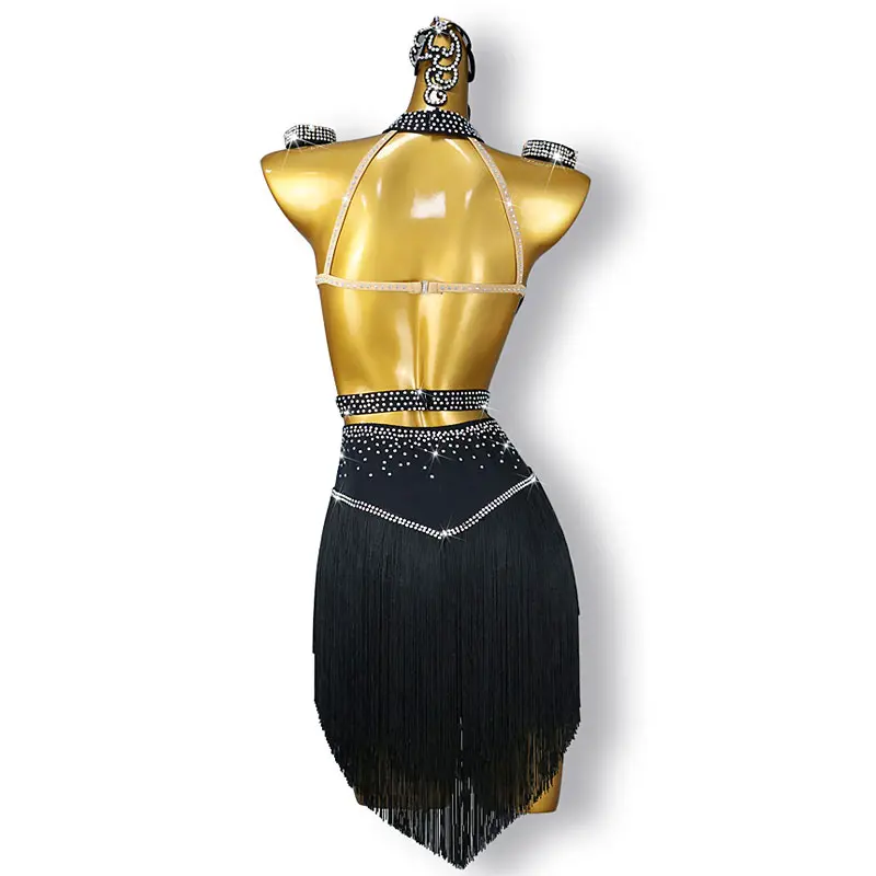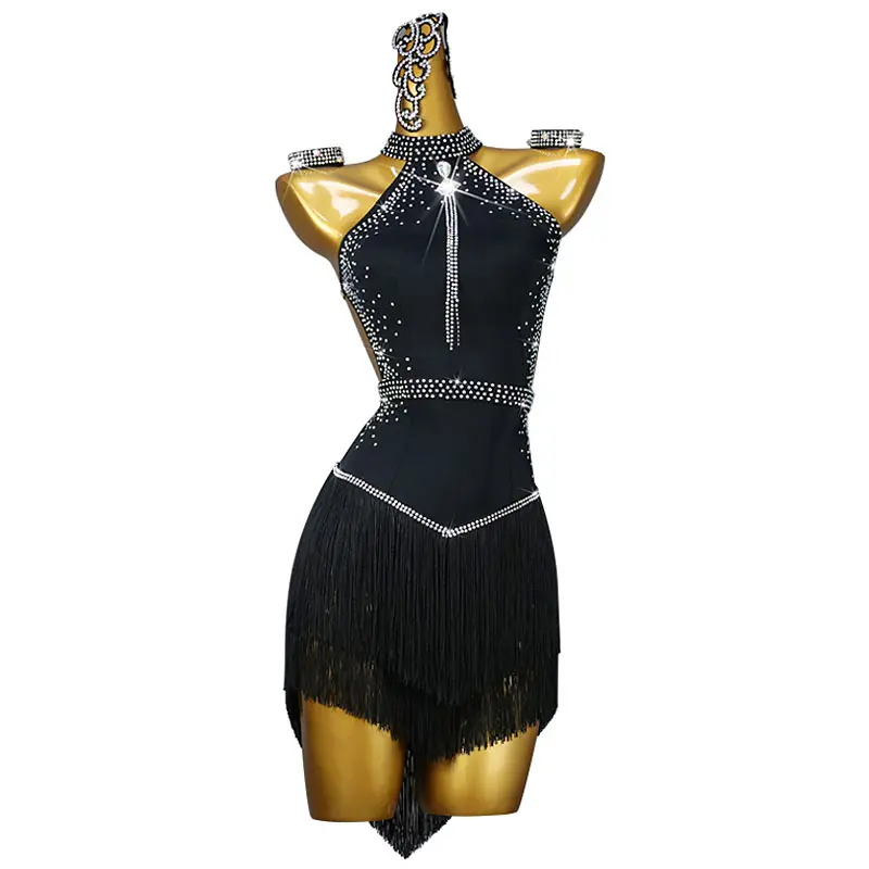 Women's Performance Wear Elegant Rhinestone Latin Dance Dress for Stage Ballroom Dancewear Costume