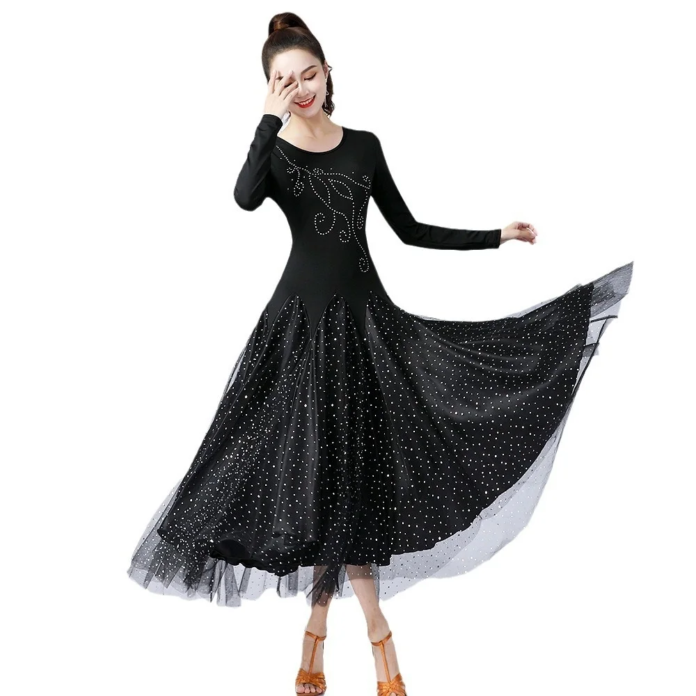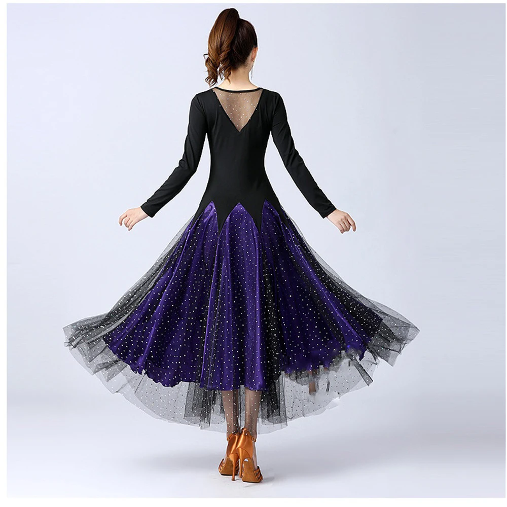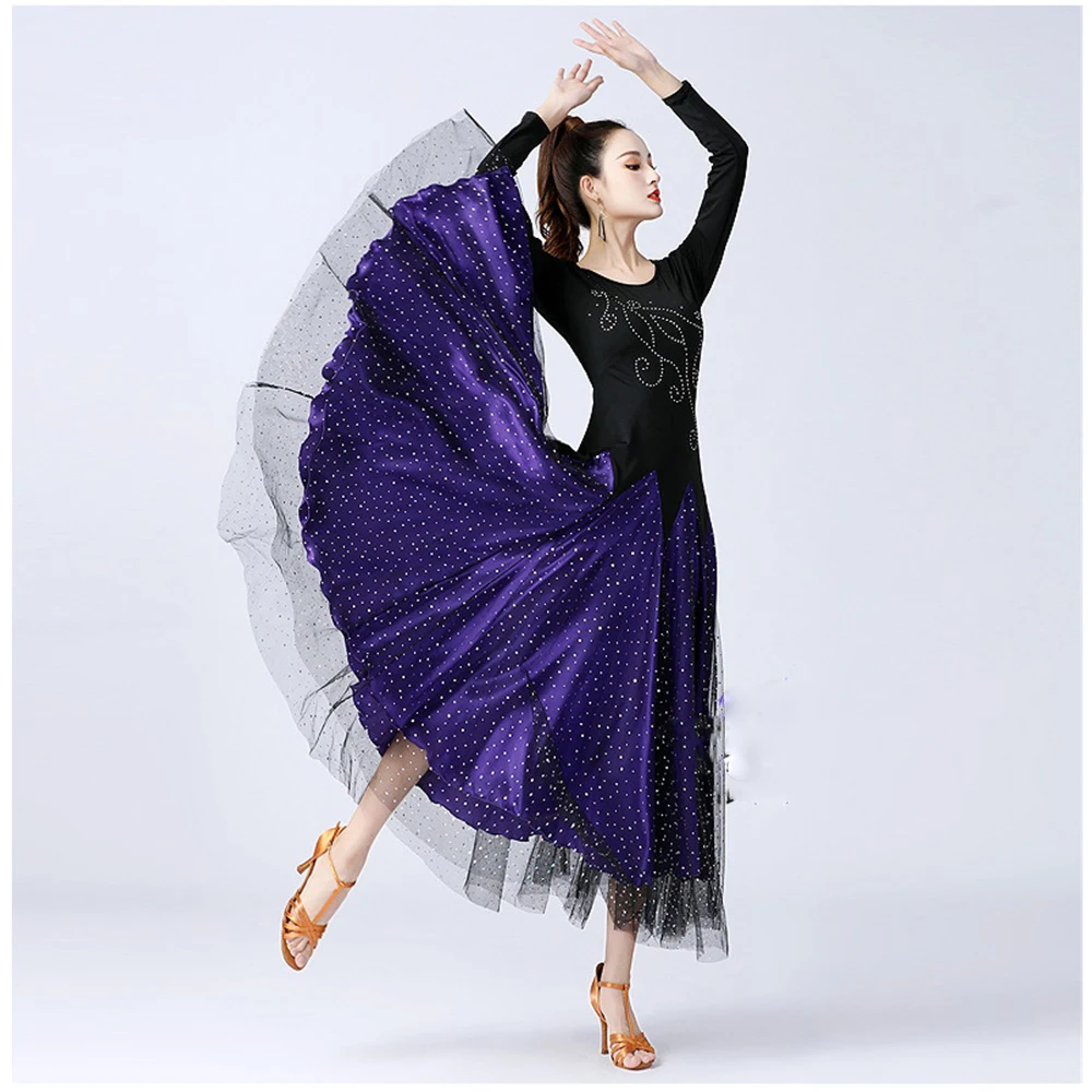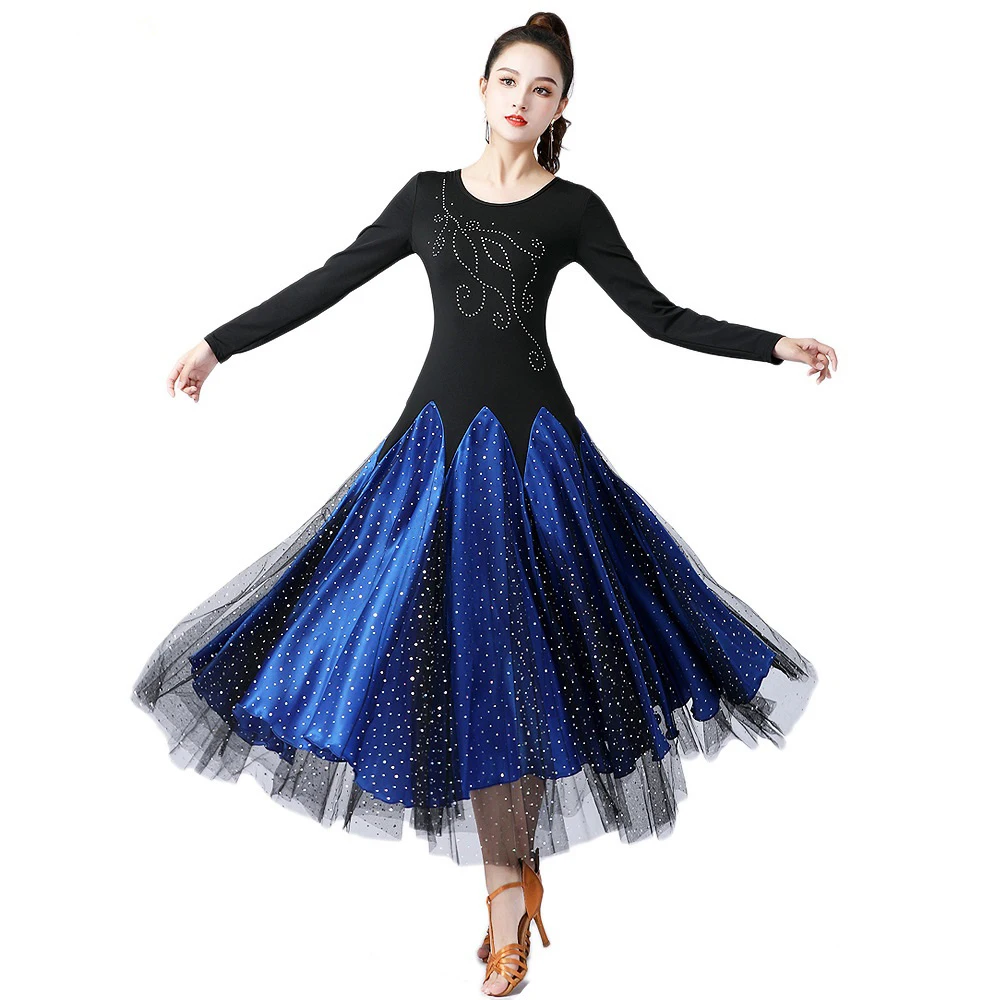 Ladies' Modern Dance Performance Skirt Adult Long-Sleeved Polyester Fabric Ballroom Dancing Costume Soft Comfortable