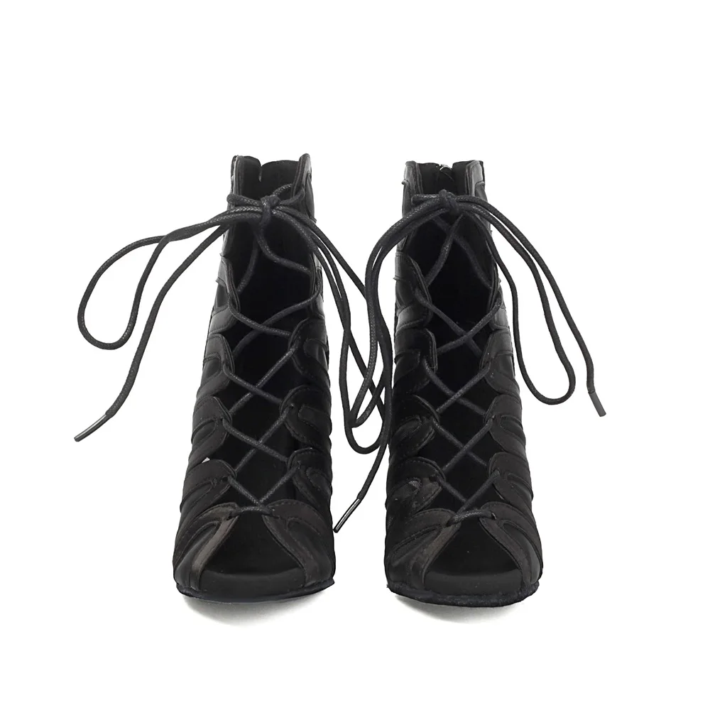 Ladies Lace-Up Openwork Jazz Dance Boots High Heel Cowhide Outsole Latin Dance Boots Large Size Stage Performance Boots