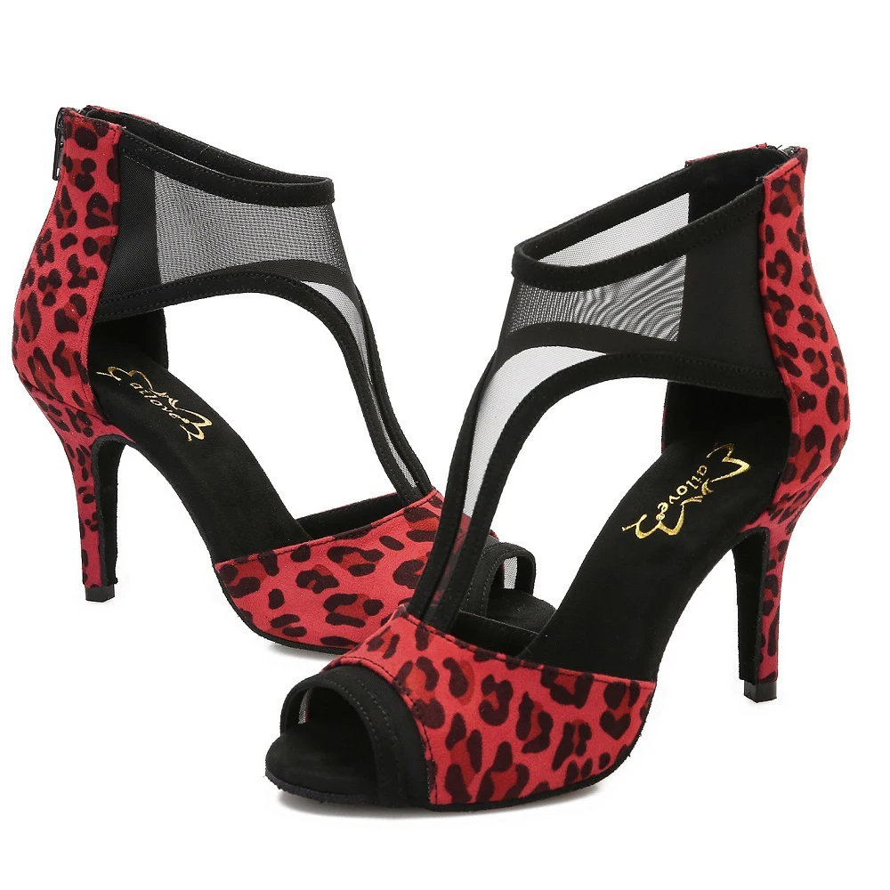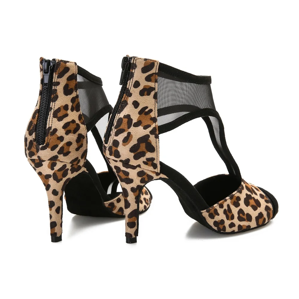 Women's Fashion Suede Leopard Print Latin Dance Boots High-Heeled Soft-Soled Adult Indoor Salsa Stage Shoes