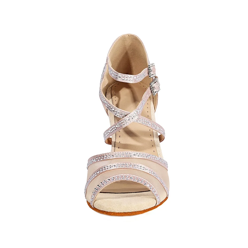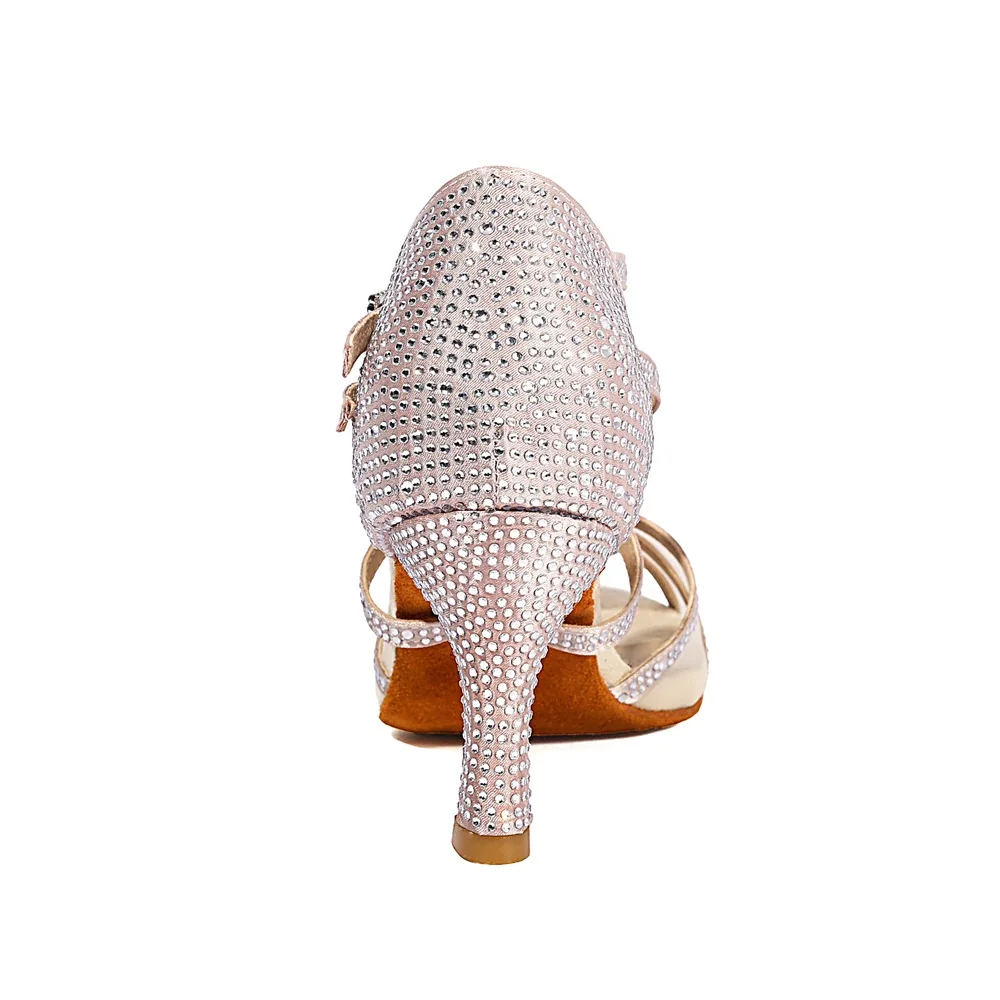 Women's Satin Band Drill Salsa Shoes Adult Indoor Non-Slip Latin Dance Performance Shoes Comfortable High Heels Dance Shoes