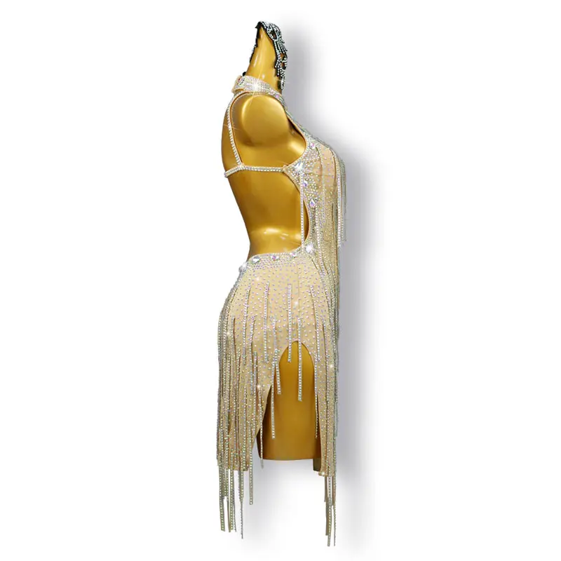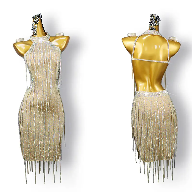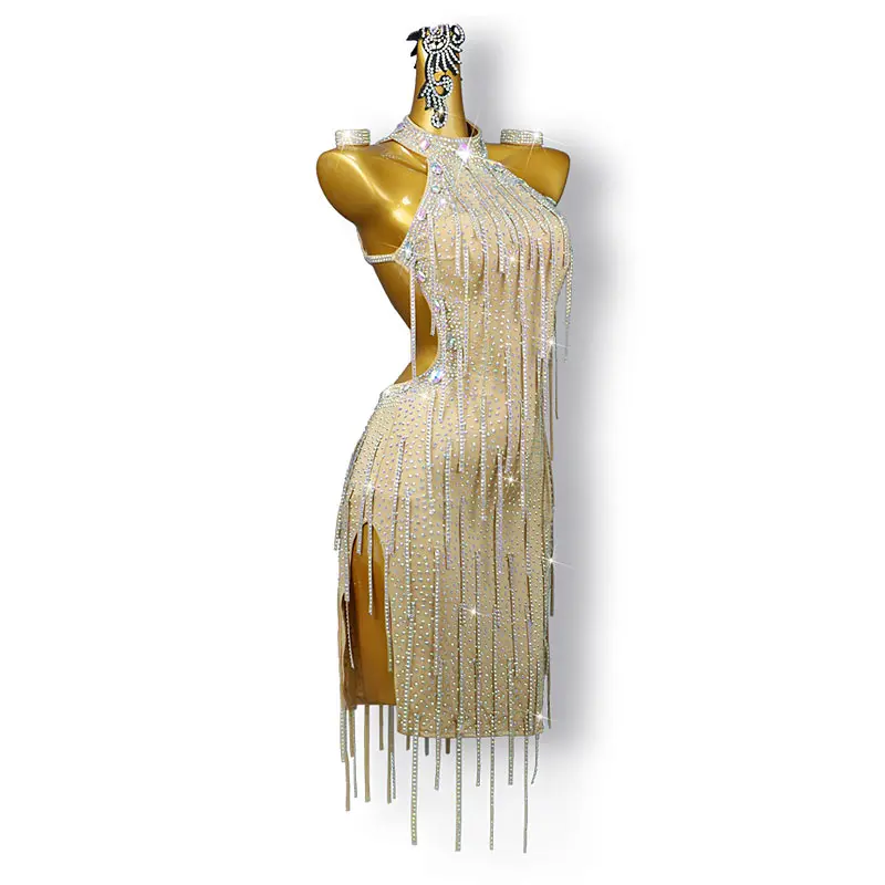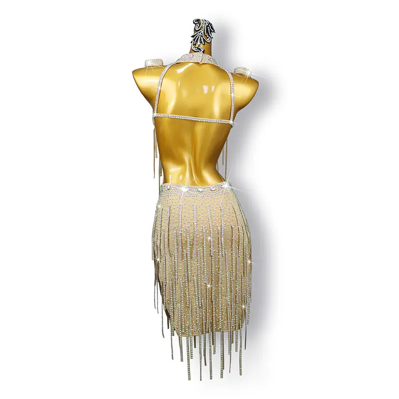 Latin Dance Skirt Stage Performance Dress Dance Costume Tassels Rhinestone Woman Latin Dress