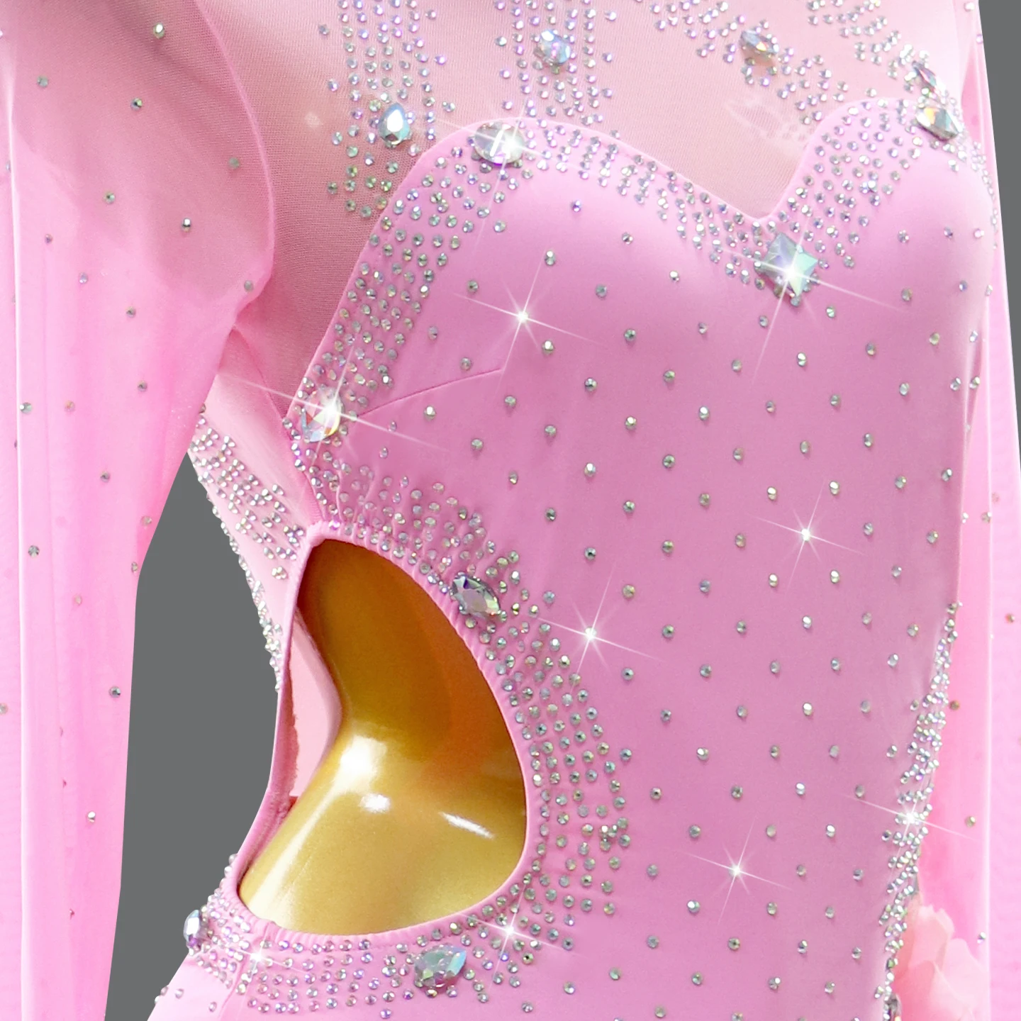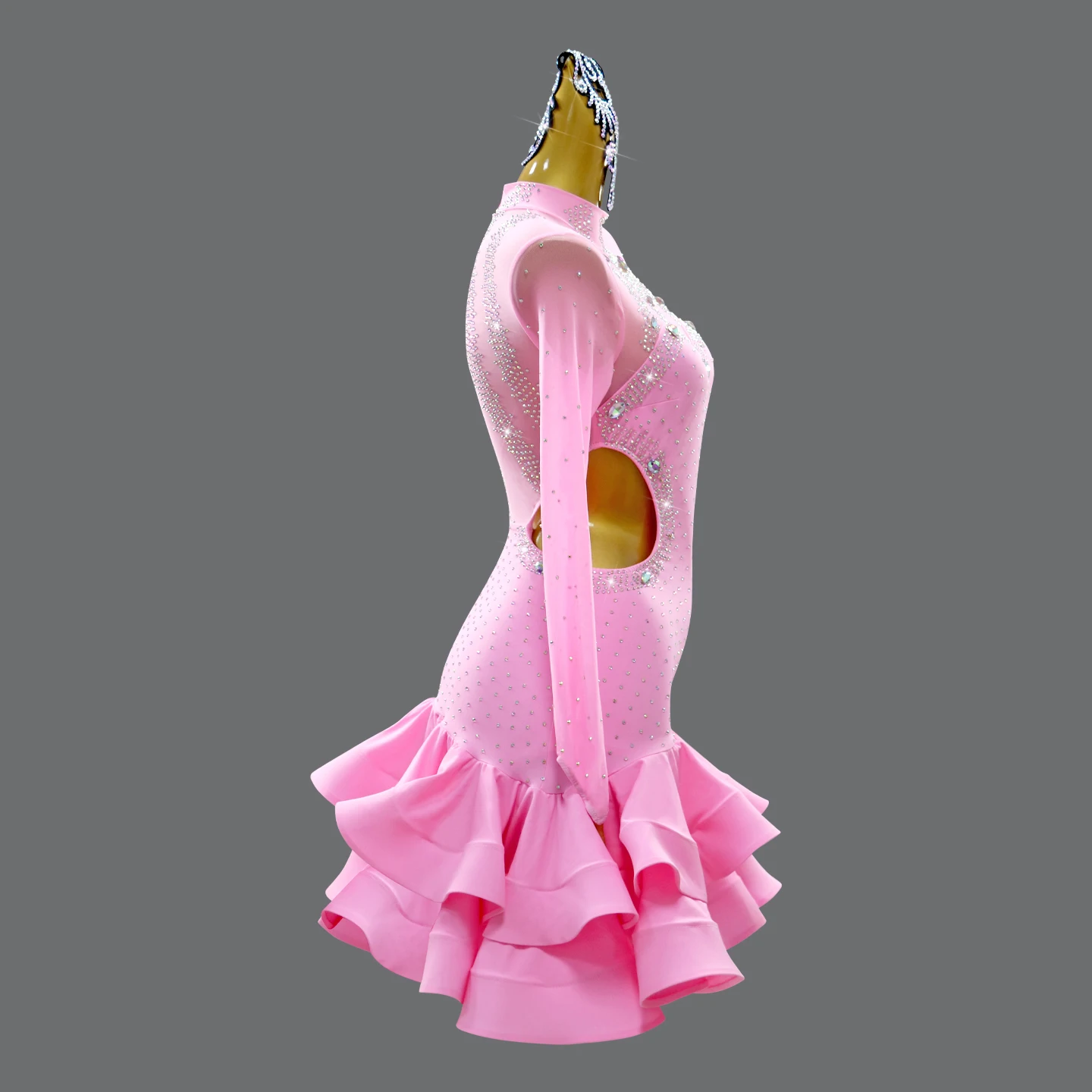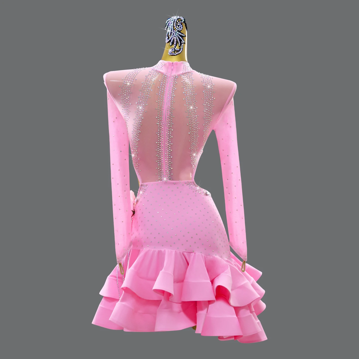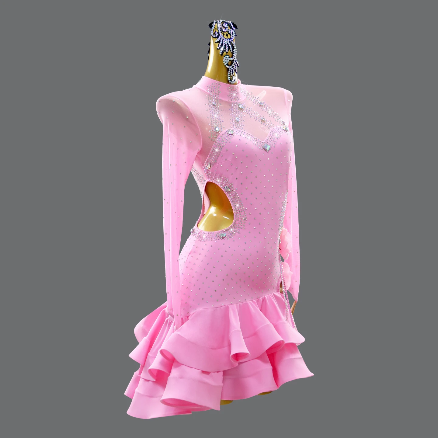 Long Sleeved Mesh Girls Latin Dance Dress Rhinestone Children's Ballet Dance Costumes Women Competition Performance Costumes