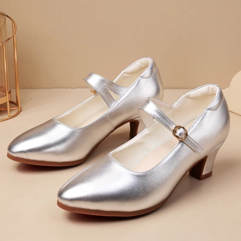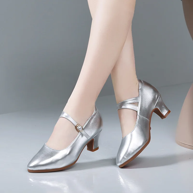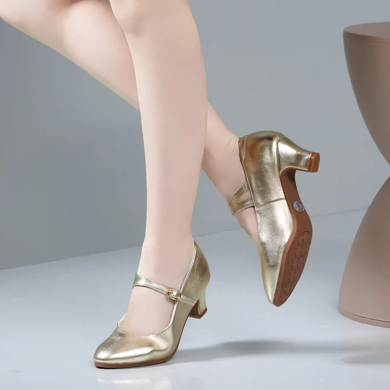 Ladies' Comfortable Fashionable Cotton Lining Waltz Shoes PU Upper Rubber Sole Wear-Resistant Adult Outdoor Latin Dance Shoes