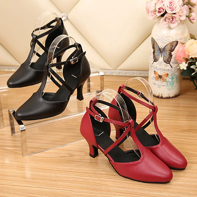 Women's Baotou Latin Dance Shoes High-Heeled Soft-Soled Salsa Stage Shoes Leather Uppers Wear-Resistant Cowhide Outsole